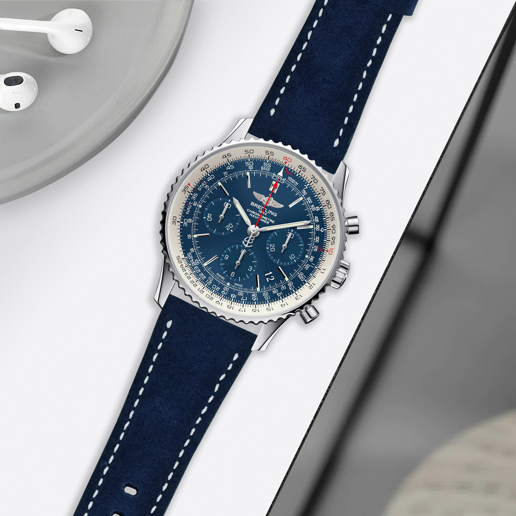 Breitling Navitimer Straps - Suede Navy Blue