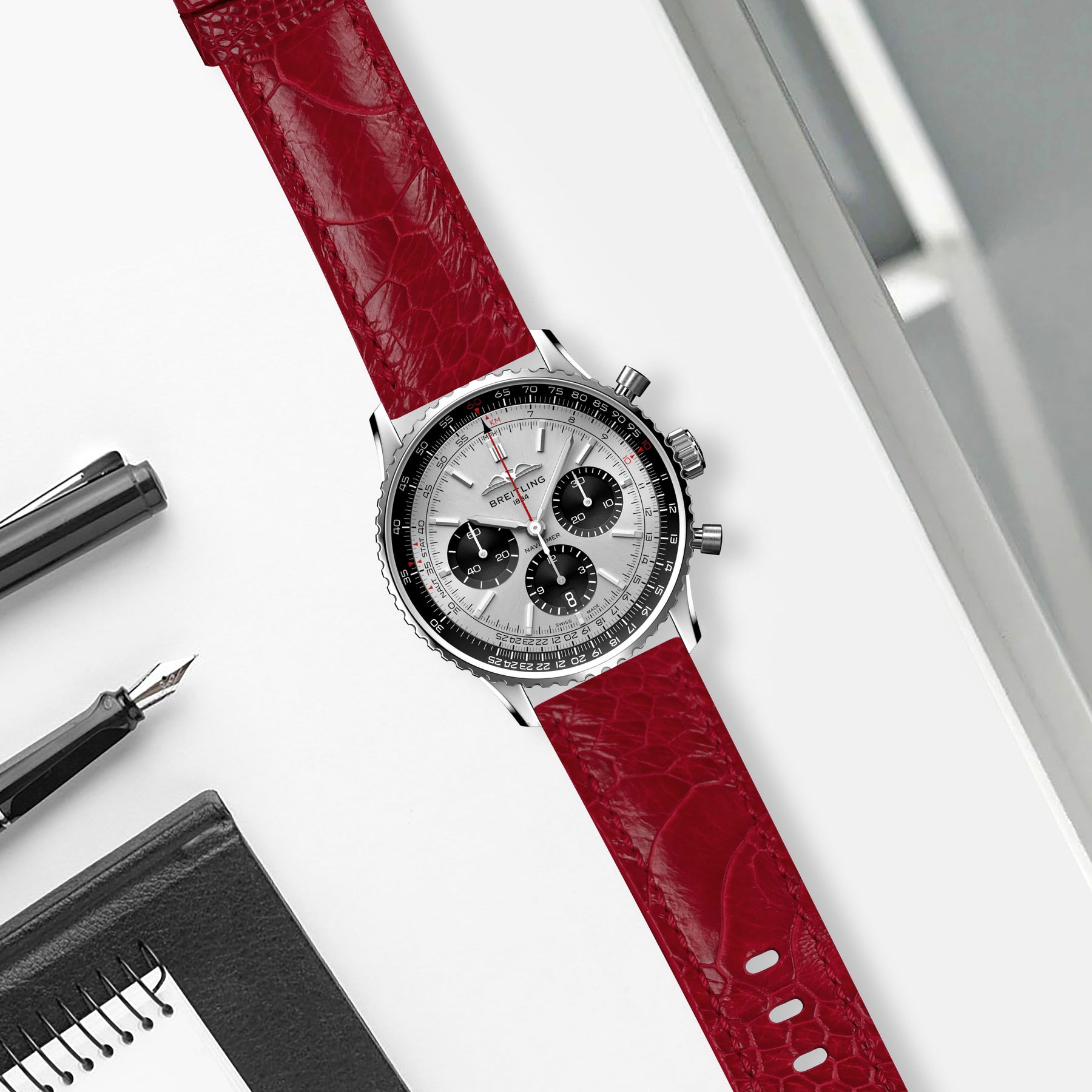 Breitling Navitimer Straps - Ostrich Leg Red