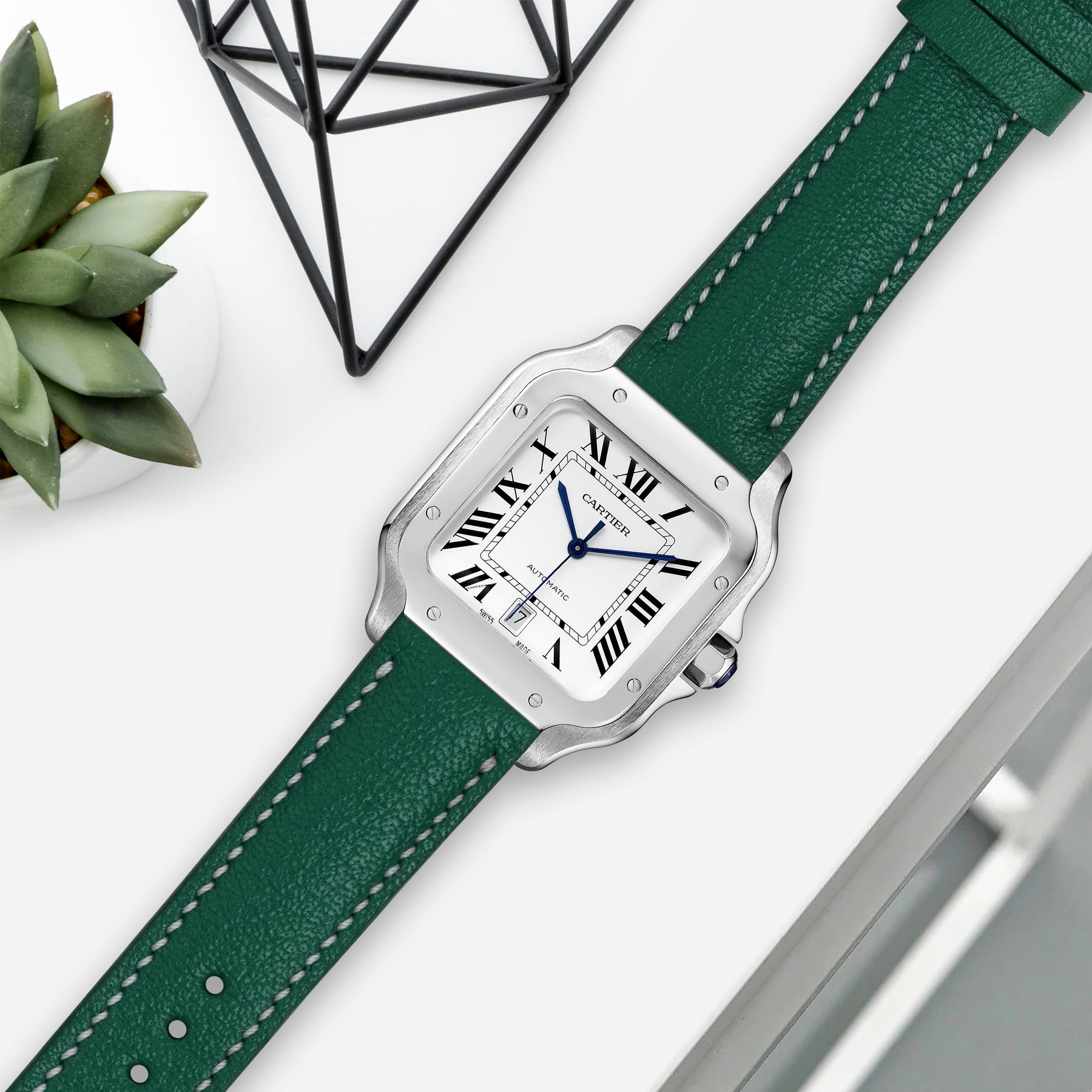 Previously, you could only get these straps through Cartier. After research & development we are now proud to be able to offer integrated straps that is a perfect fit for the Cartier Santos de Cartier from Medium, Large and also XL versions too.