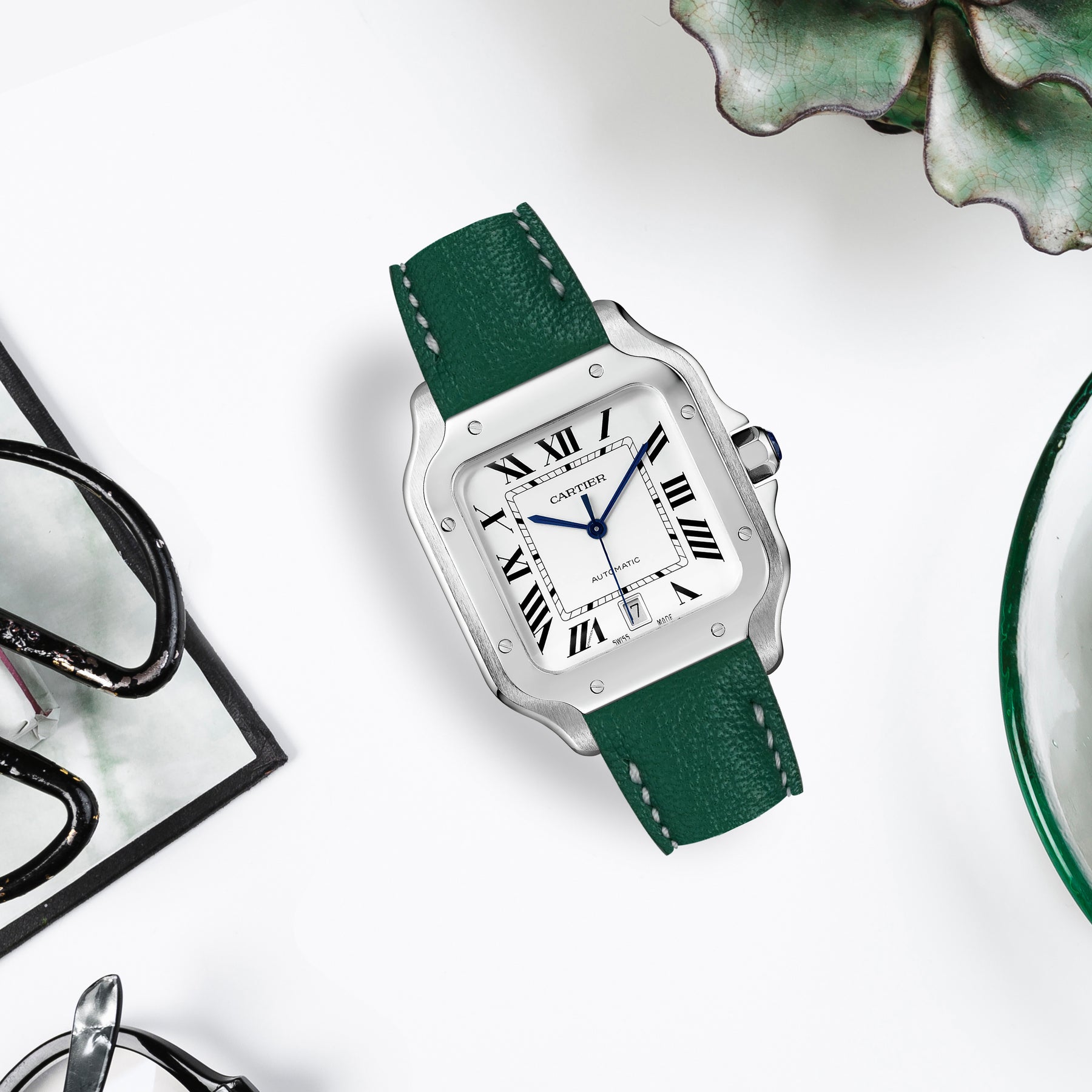 Cartier New Santos Quick Release Straps - Chevre British Green