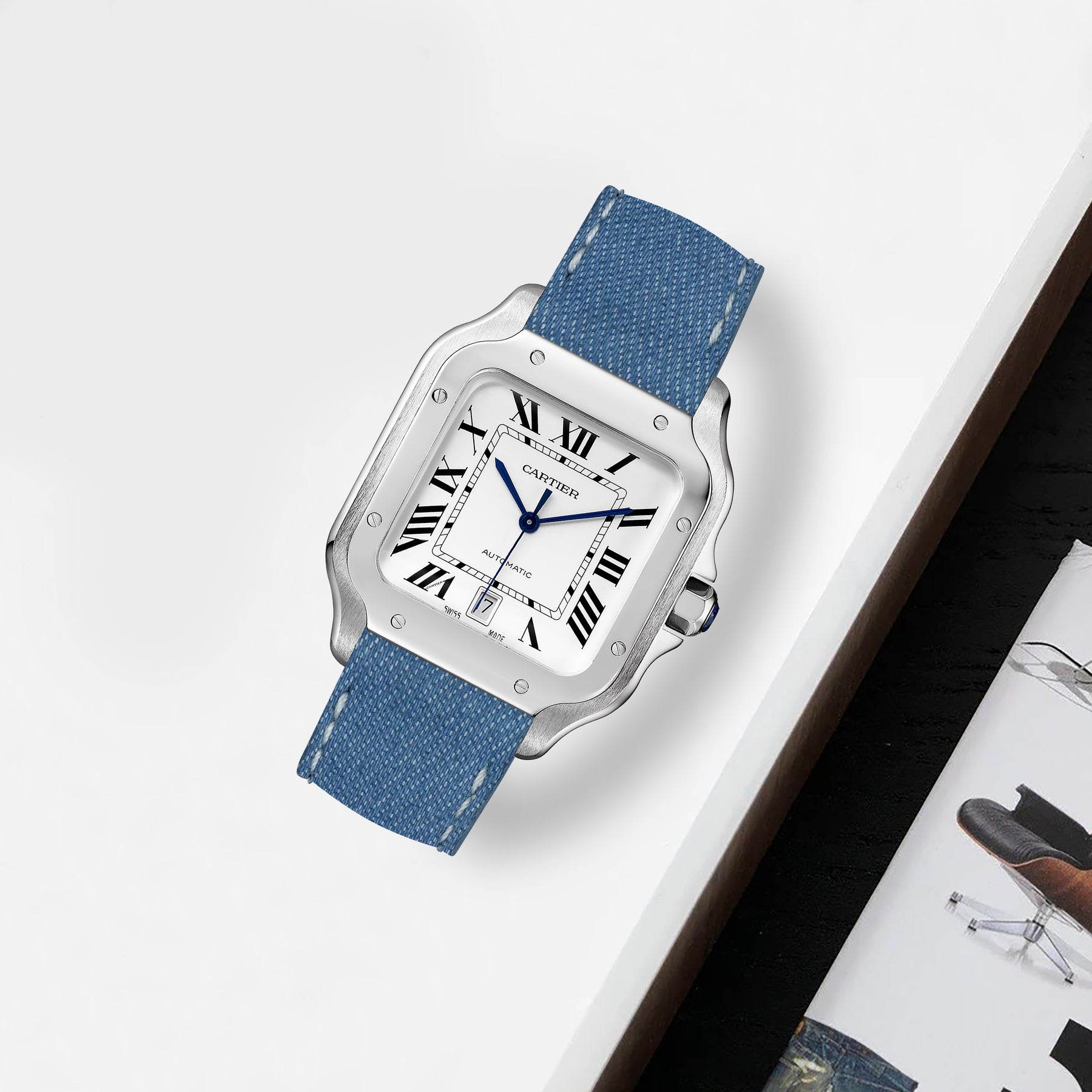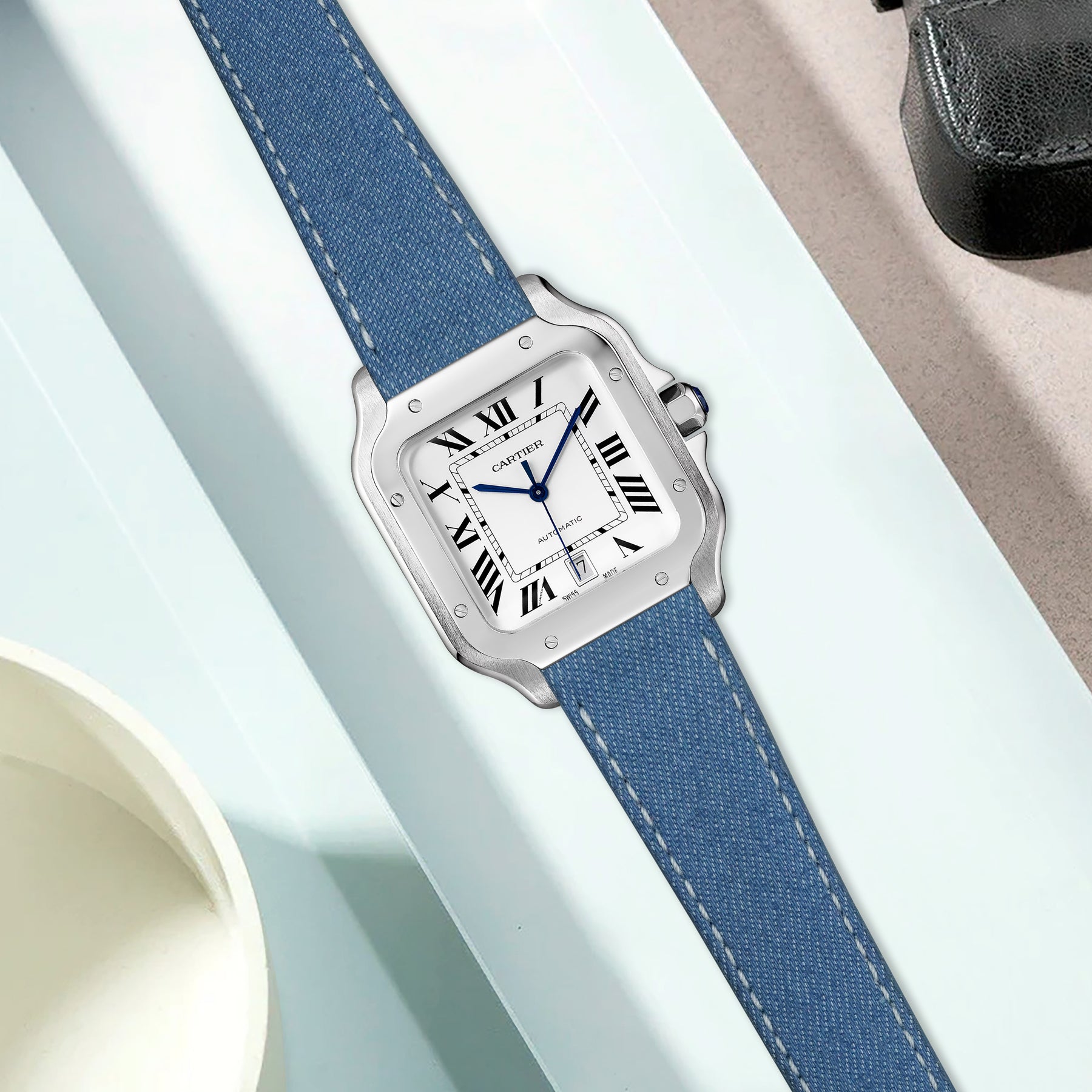 Cartier New Santos Quick Release Straps - Denim Blue Haze