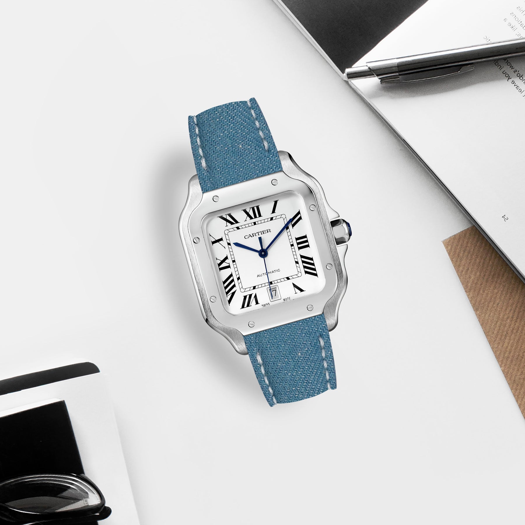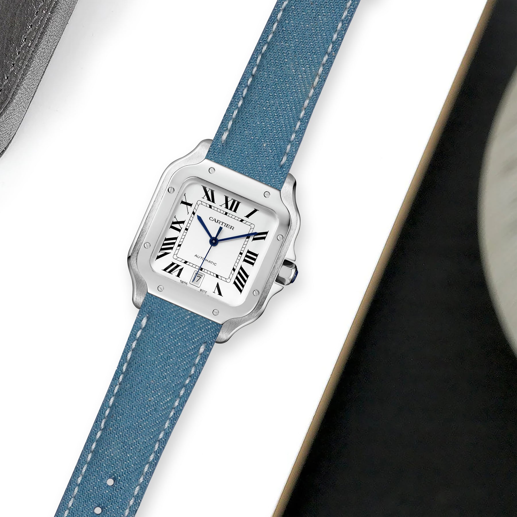 Previously, you could only get these straps through Cartier. After research & development we are now proud to be able to offer integrated straps that is a perfect fit for the Cartier Santos de Cartier from Medium, Large and also XL versions too.