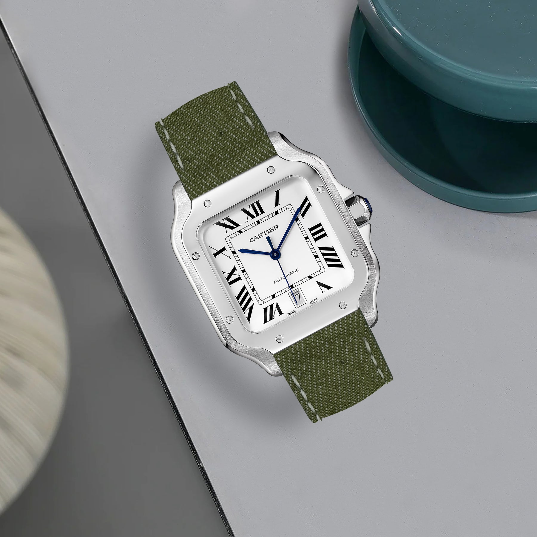 Previously, you could only get these straps through Cartier. After research & development we are now proud to be able to offer integrated straps that is a perfect fit for the Cartier Santos de Cartier from Medium, Large and also XL versions too.