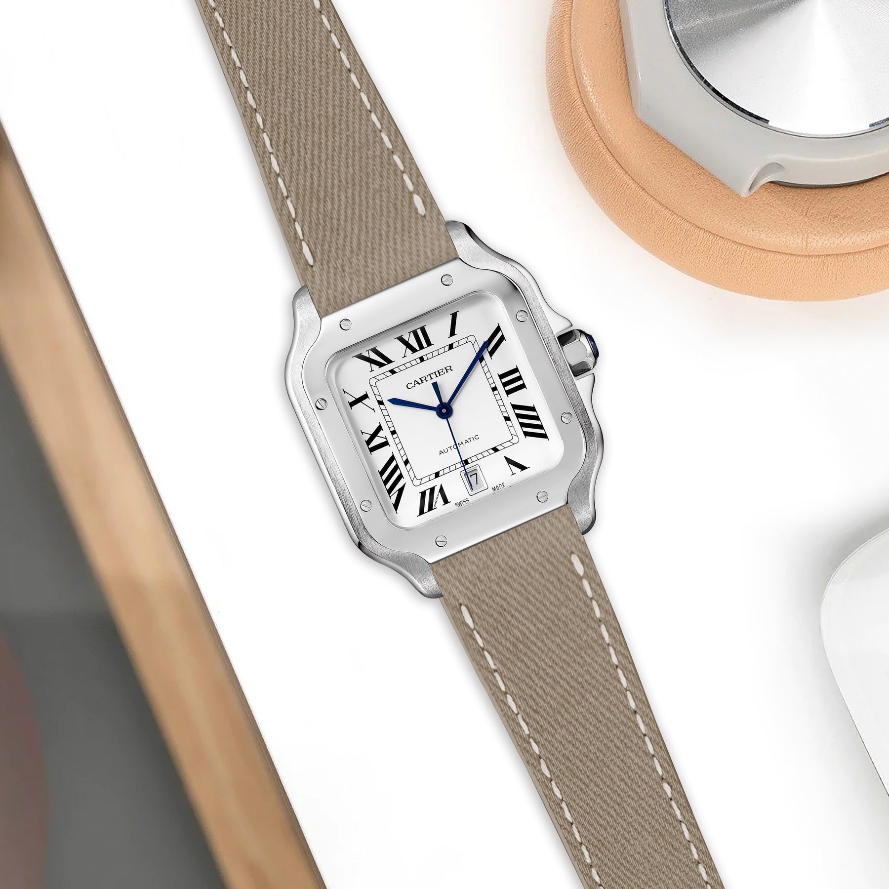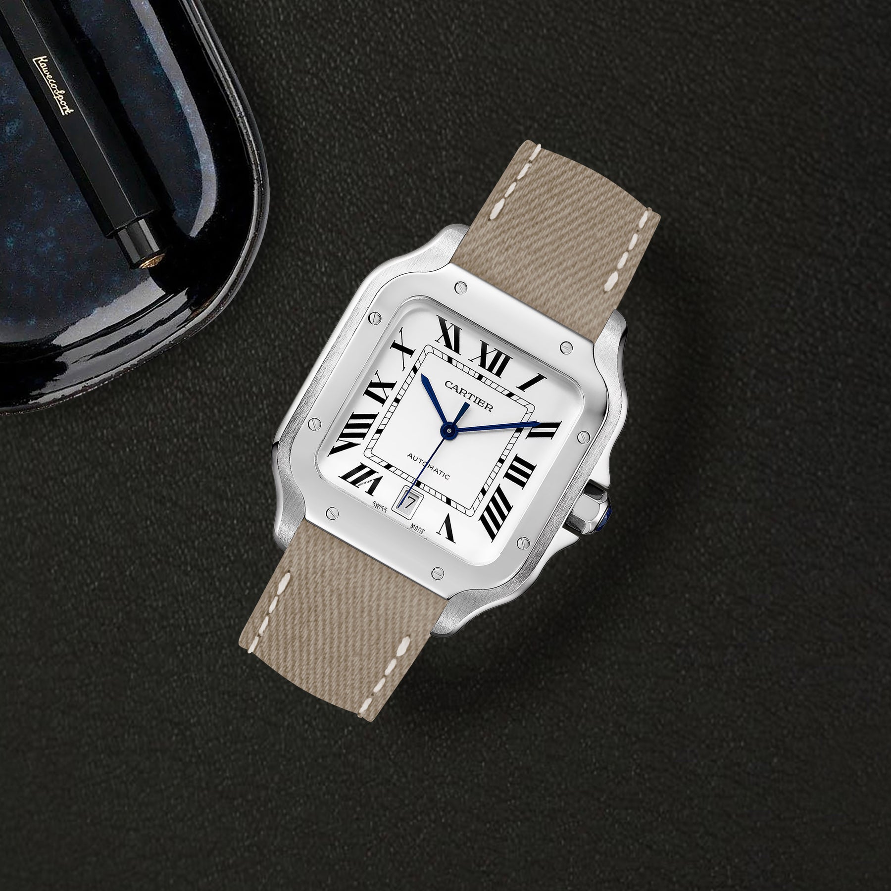 Previously, you could only get these straps through Cartier. After research & development we are now proud to be able to offer integrated straps that is a perfect fit for the Cartier Santos de Cartier from Medium, Large and also XL versions too.