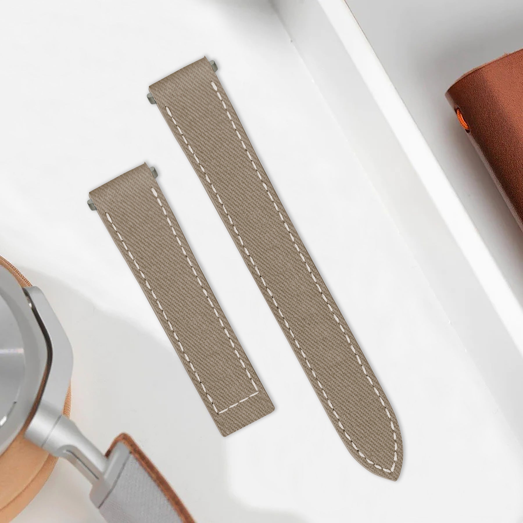 Japanese Denim Sandstorm brings contrast and clarity to your wrist. We use original Selvedge Denim from Japan’s most prestigious and renowned mills. It is woven on rare and slow antique looms to produce exceptional and fascinating textures for straps. Beyond its unique yarn combination, the denim's tight weave, stiff texture, pronounced twill lines and slightly coarse yarns create an exquisite surface structure and marbling effects with wear.