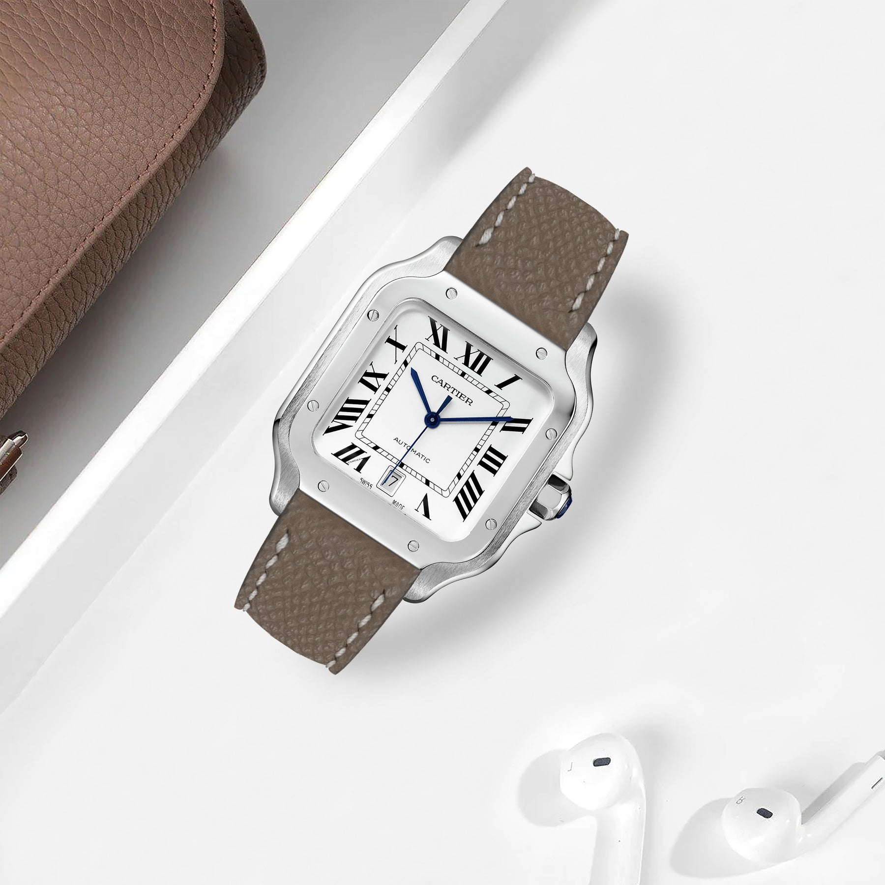 Cartier New Santos Quick Release Straps - Epsom Taupe