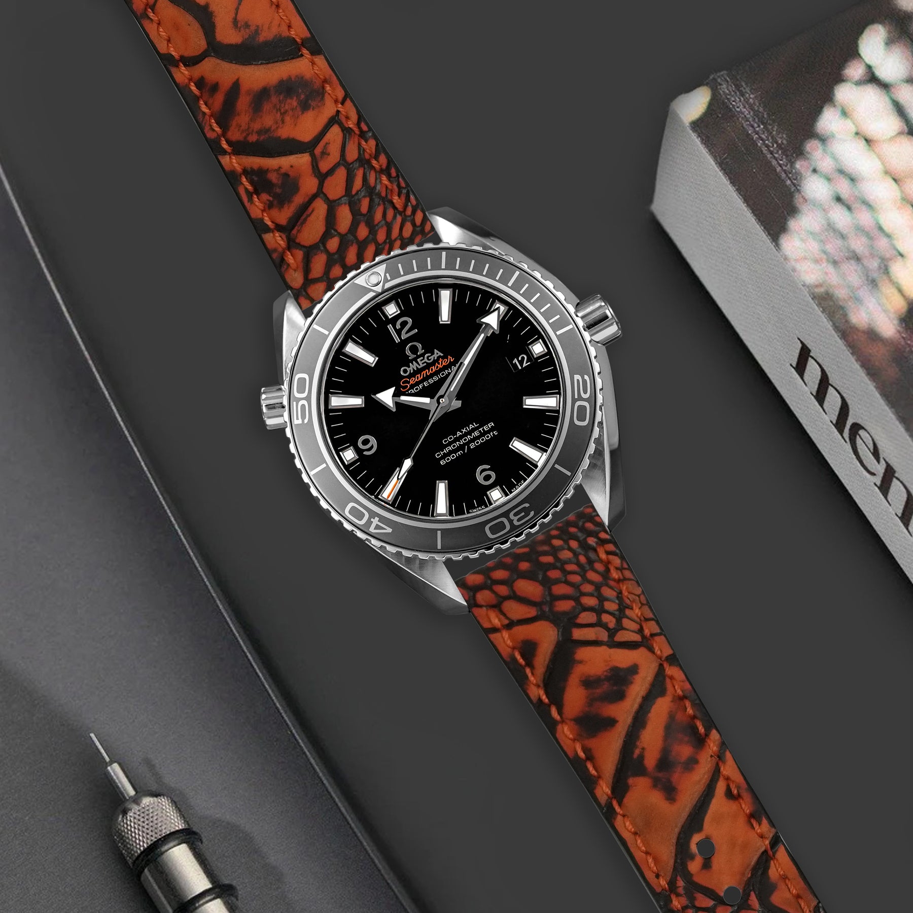 Omega Seamaster Planet Ocean Straps - Ostrich Leg Nubuck Tangerine