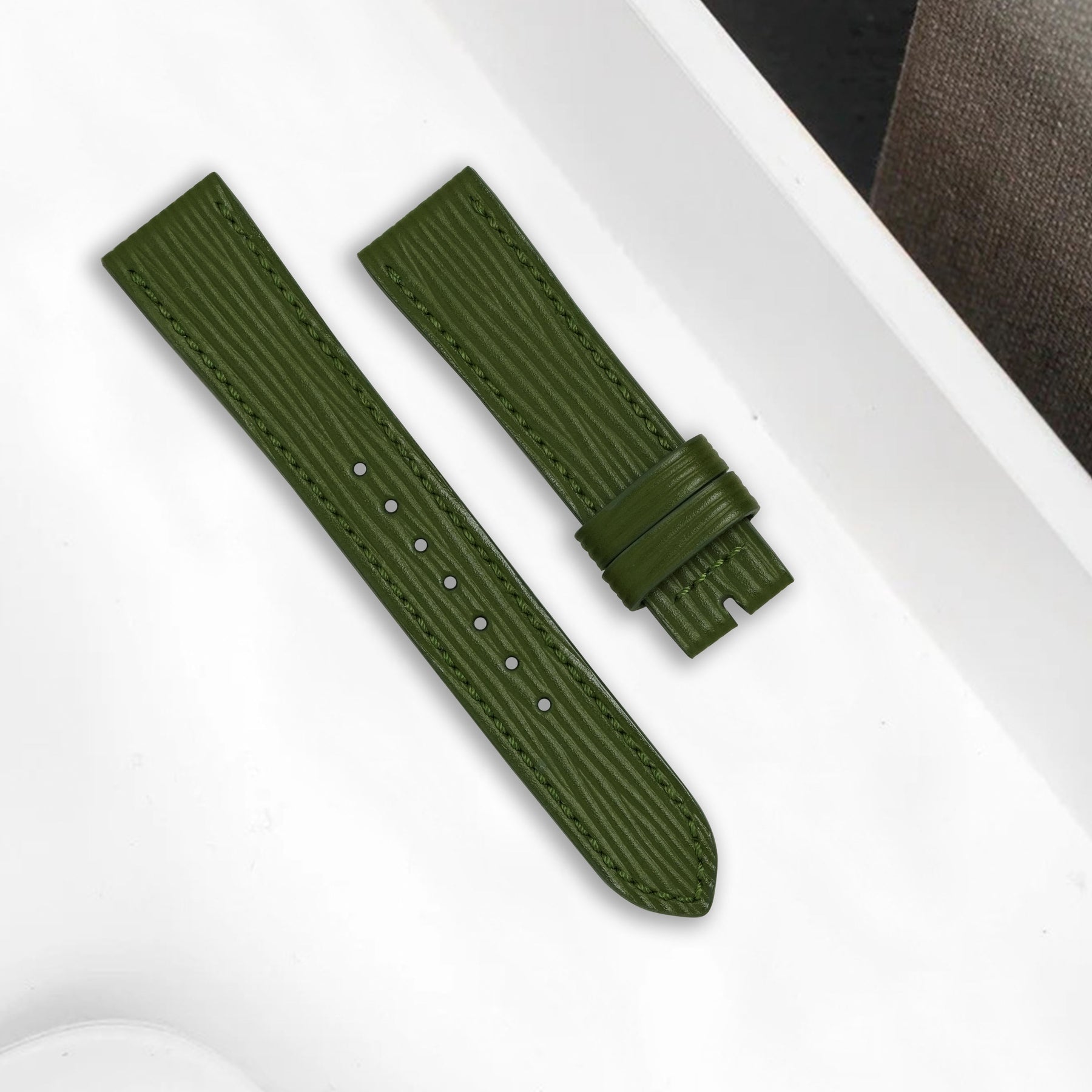 Sourced from the most prestigious Europe tanneries, boasts a distinctive texture that sets it apart. Available in a palette of sophisticated hues, our Epi serie cater to diverse tastes and preferences. From classic deep hues exudes understated luxury to rich vibrant tones that make a bold statement, there's a strap to complement every style and occasion. Whether paired with a classic dress watch or a vintage timepiece, these Epi serie effortlessly elevate your wrist game.