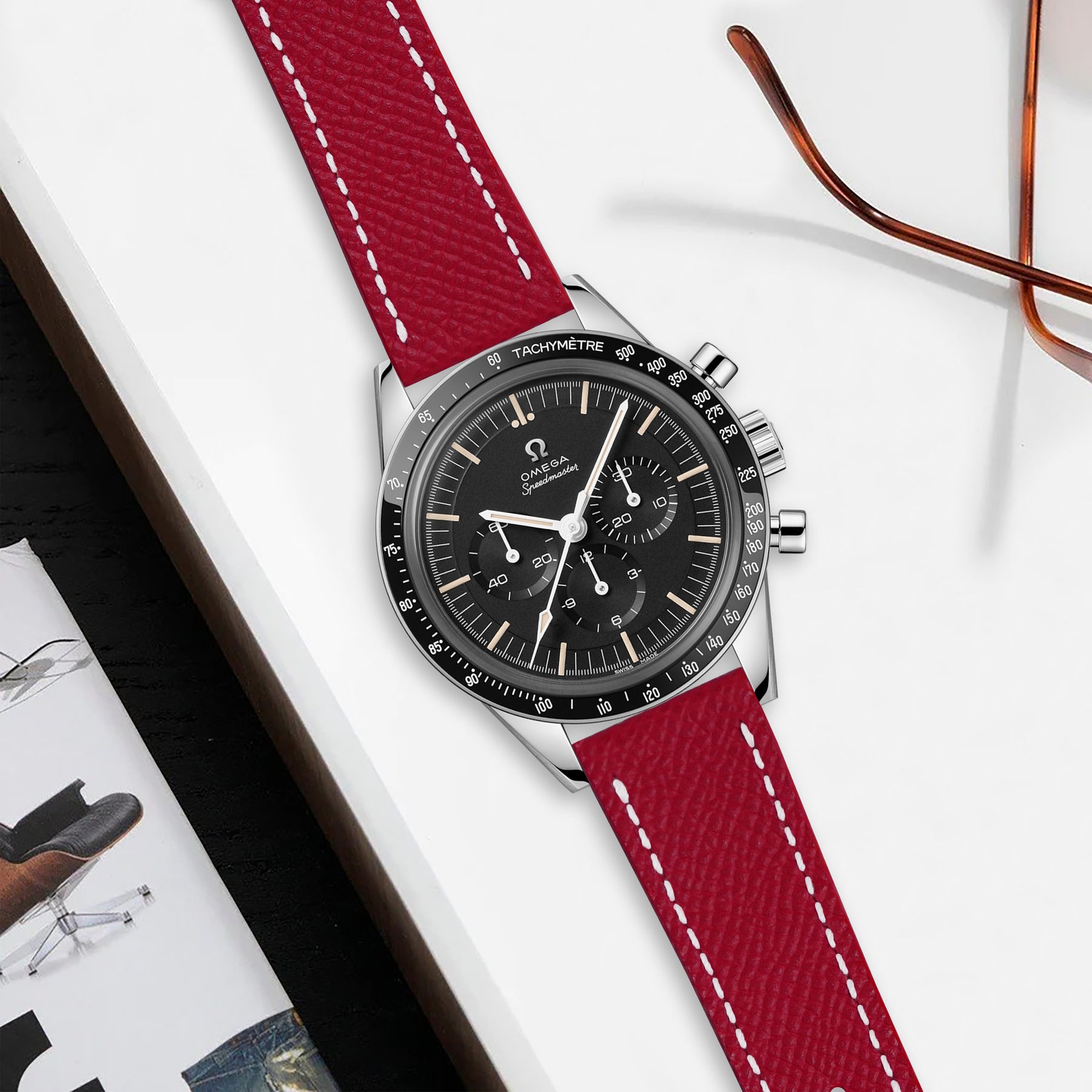 Omega Speedmaster Heritage Straps - Epsom Maroon