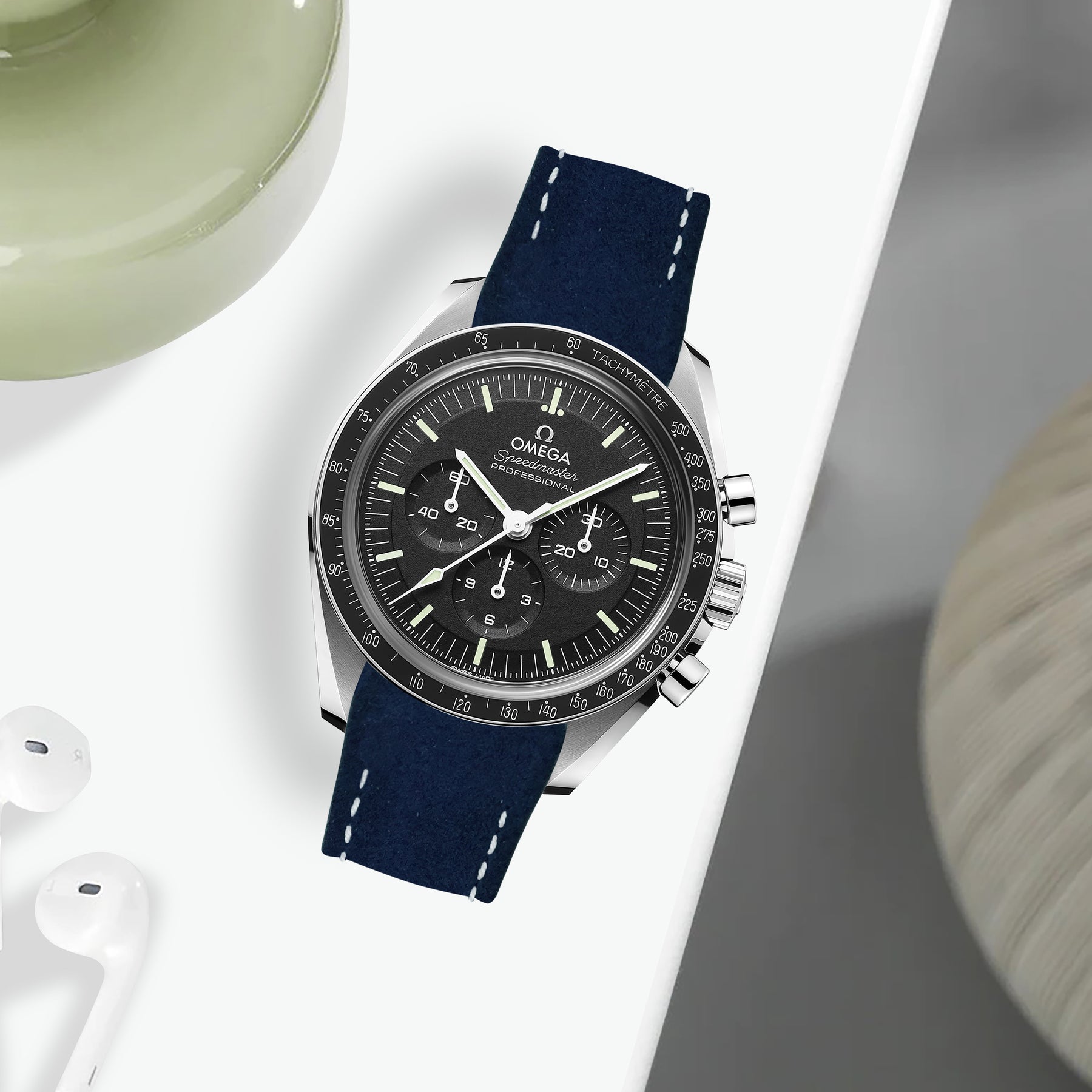 Omega Speedmaster Moonwatch Straps - Suede Navy Blue