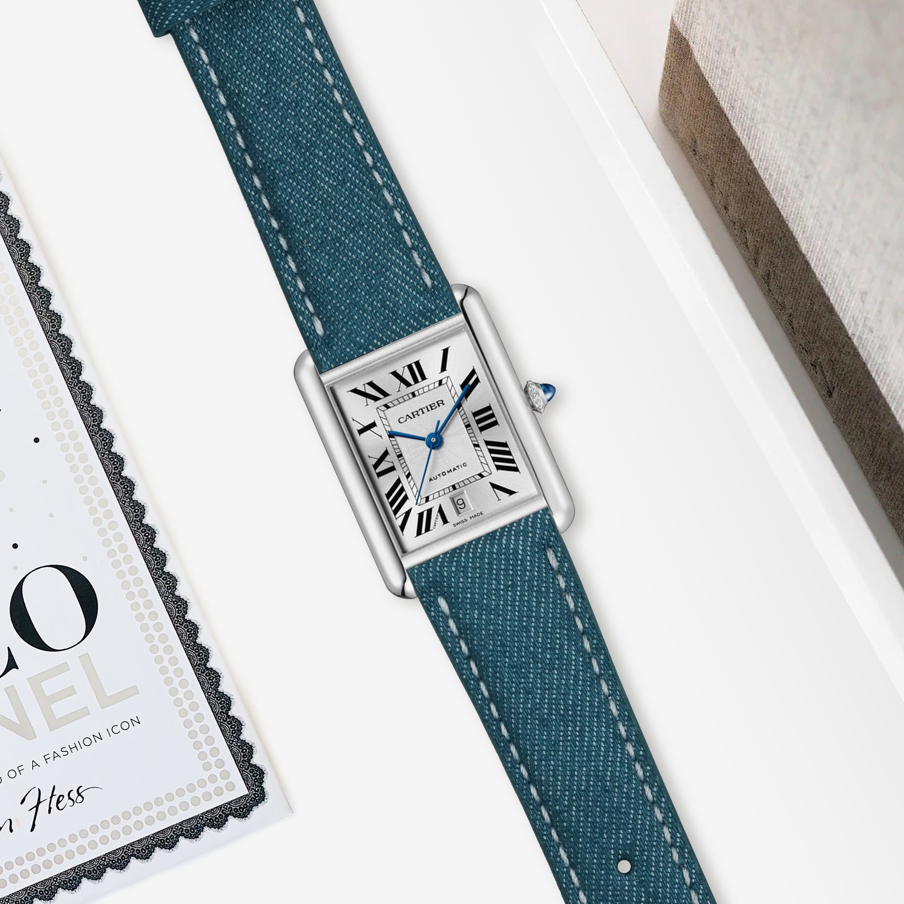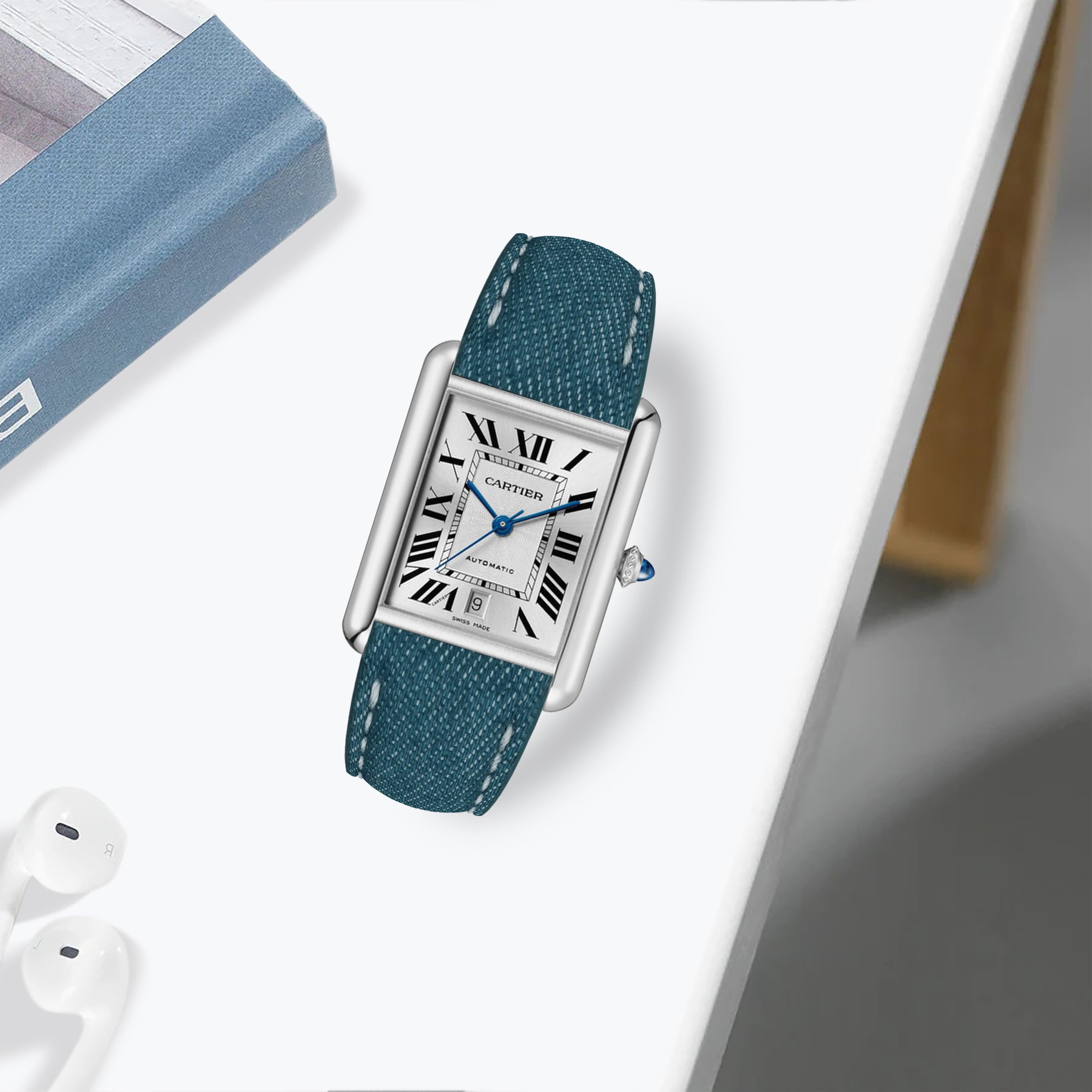 Description : The Cartier Tank has cemented its positioning as one of the most iconic watches of the past 100 years, with its appeal persisting into the present day. We are delighted to present a range of Denim Selvedge straps, specially tailored to fit the iconic Cartier Tank Must and Tank Louis Cartier models. Available in Small, Large and Extra Large sizes.