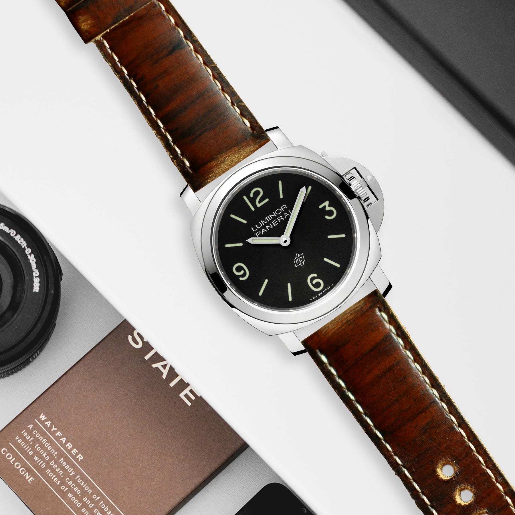 Material : A fantastic vintage style watch strap made from top grain calf leather with coloured stains and wax for an authentic vintage look.