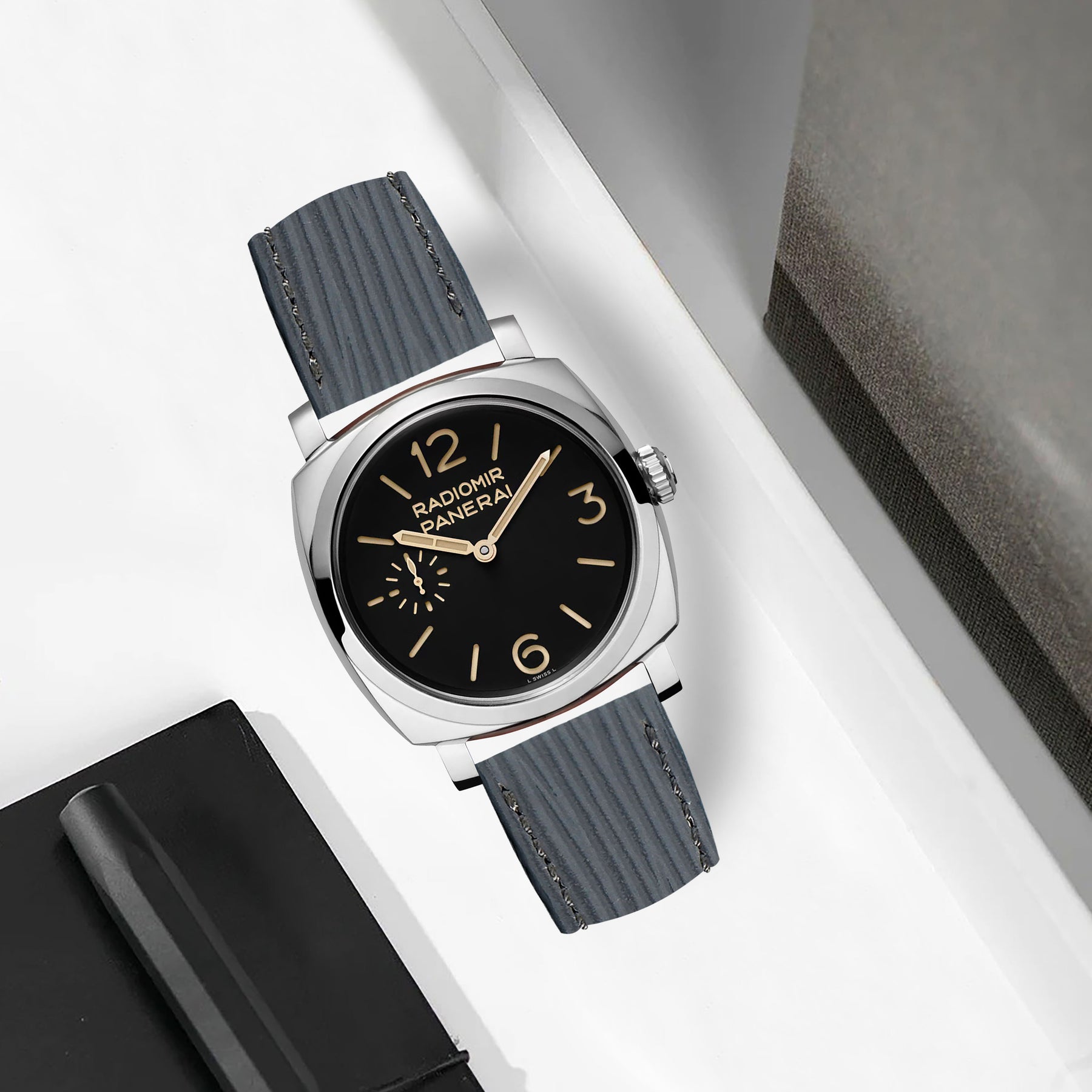 Material : European Calfskin leather with a horizontal textured pattern stamped on the surface and finished with a waterproof finish. For exceptional all-day comfort, and durability, our watch straps are lined with hypoallergenic calf leather which prolongs the life of our straps by creating a barrier between the leather of the strap and your skin.