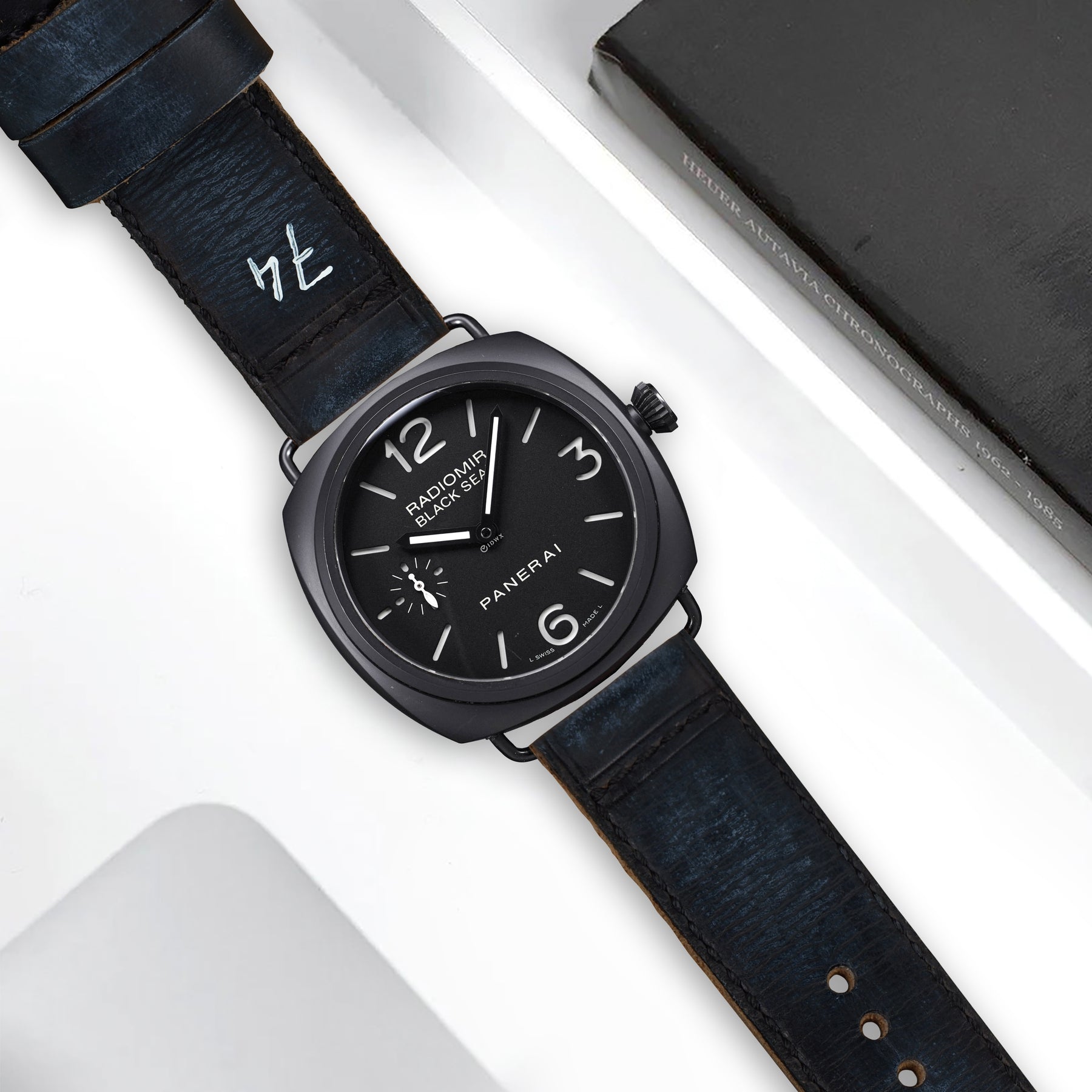 If you have a look through the Panerai Catalogue, the larger one, you will see a photo of a vintage 8-day Angelus Panerai wearing a Vintage strap with "74" marked on it. This will definitely lead to a nice wear and scrappy look to the strap over some time which will only enhance the overall look of this gorgeous strap. A really nice strap to set your watch apart from others, even if it’s not a Panerai!