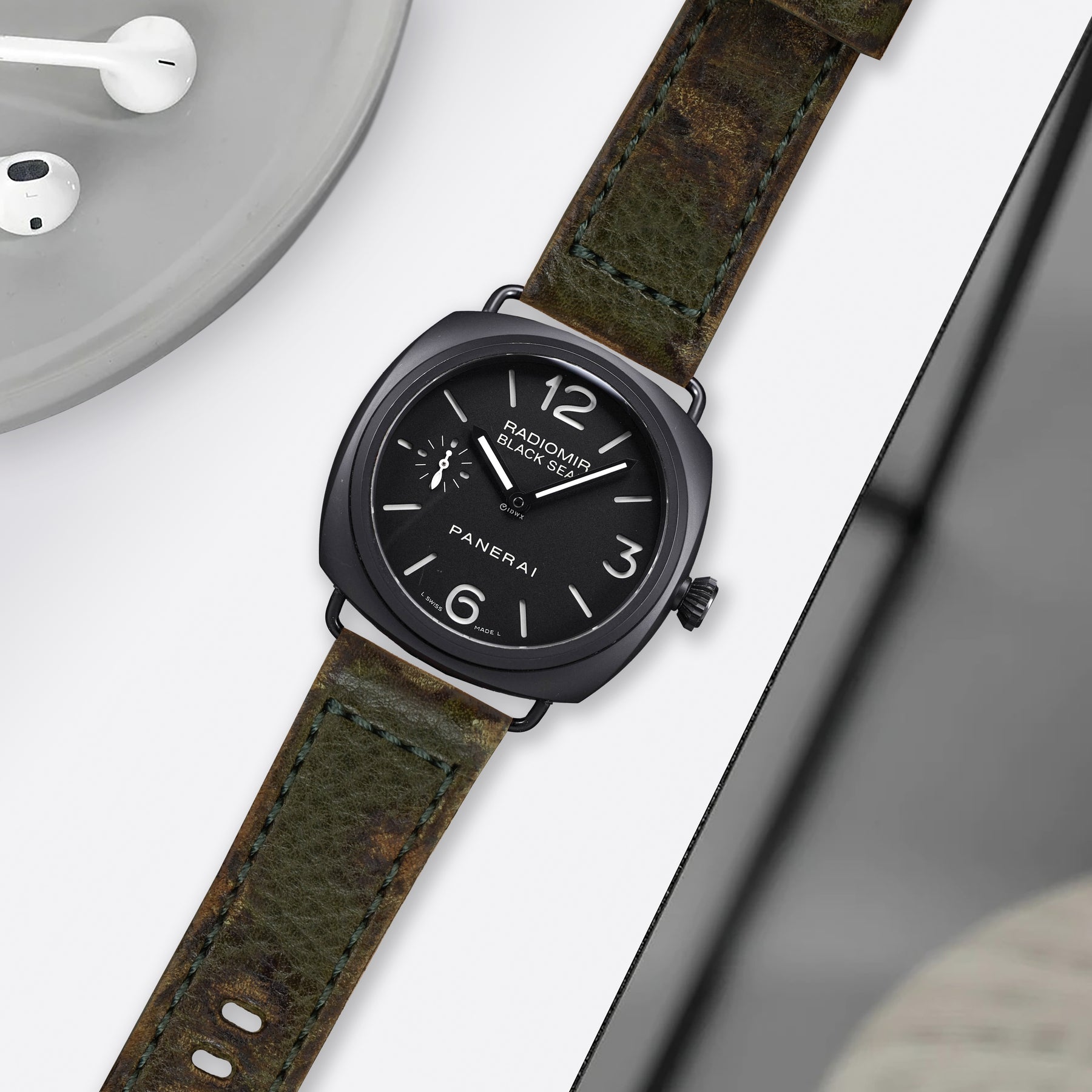Material : Genuine Italian Vegetable tanned leather with very nice artistic style that creates beautiful colour texture. For all-day comfort even in hot, humid weather, all our straps are lined with soft, supple calf leather on the underside to gently hug your wrist.