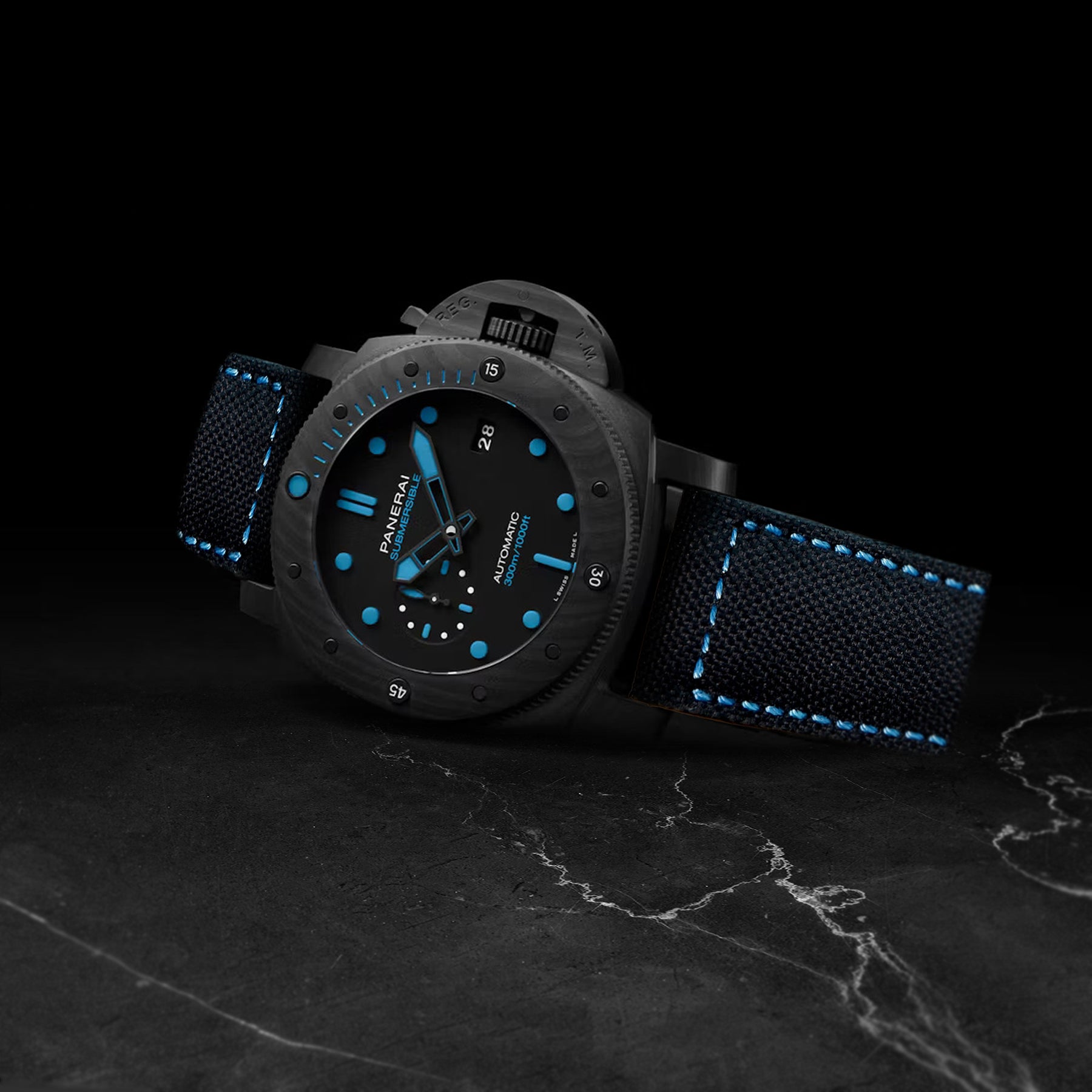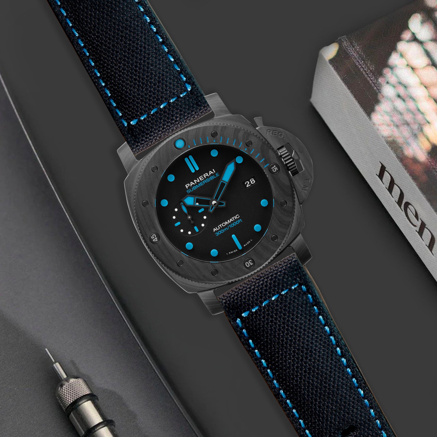 Panerai Submersible Straps - Canvas Black Blue Stitch