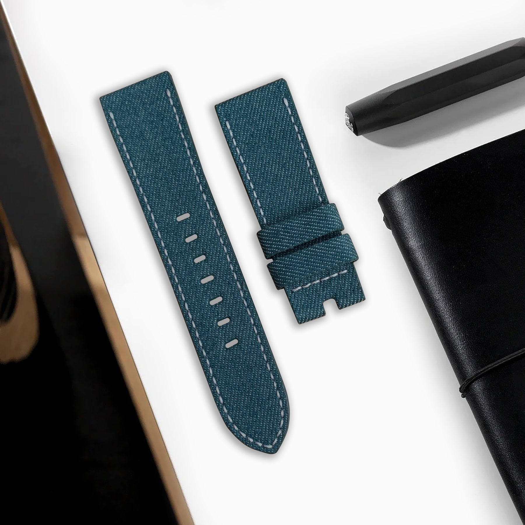 Description : Looking for something more eye-catching? Japanese Denim Dry Teal brings contrast and clarity to your wrist. The teal blue denim tone combined with visible white stitch seams gives the strap a fresh, expressive look that stands out without being loud.