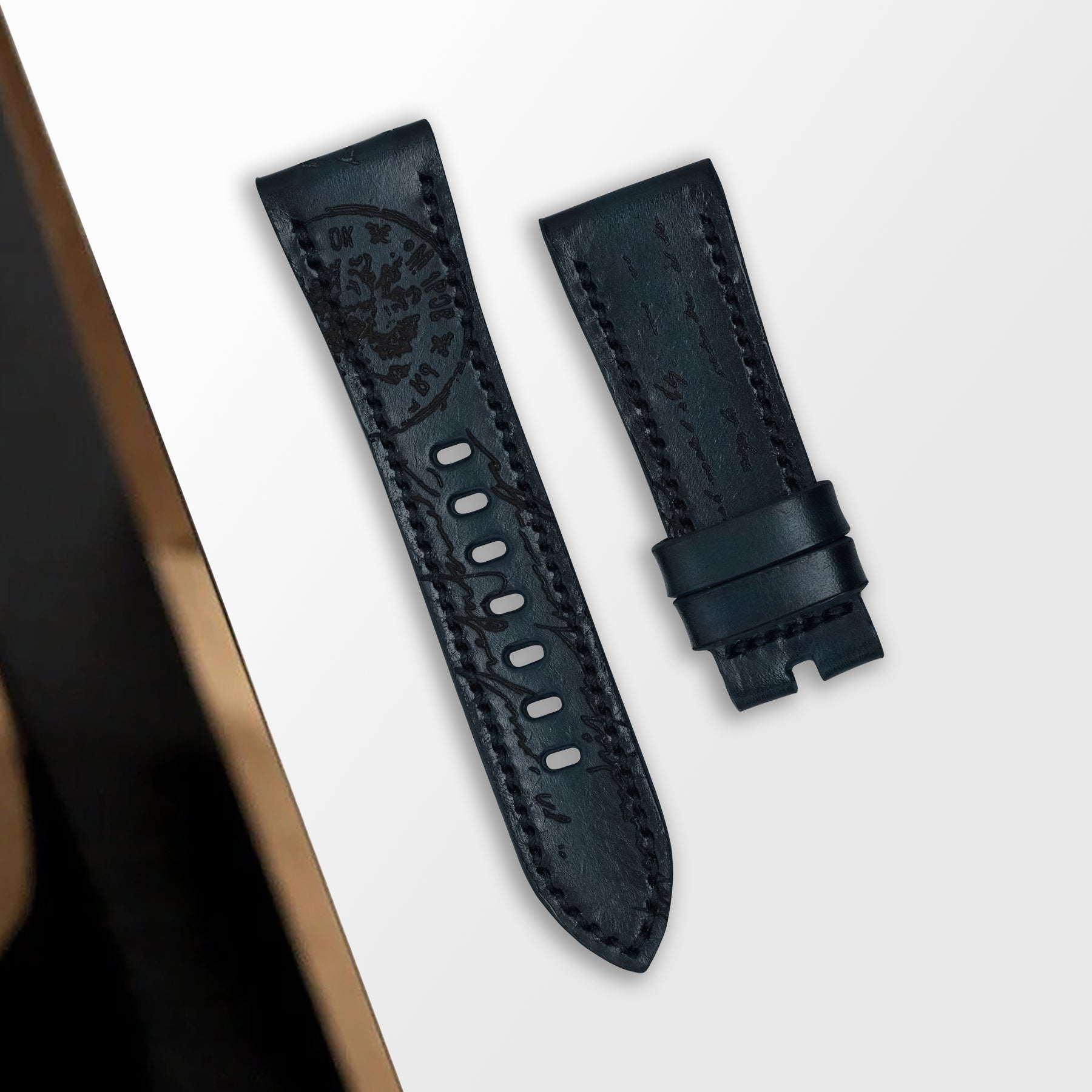 The artful combination of the fashion and the watch straps exemplified elegance, defining the spirit of the classic gentleman. Features a technique that involves engraving text into the calf leather, inspired by 18th century calligraphy. The leather is treated by hand to create unique patina, or palette of colours based on essential oils and pigments making sure this elegant strap will be on your wrist forever.