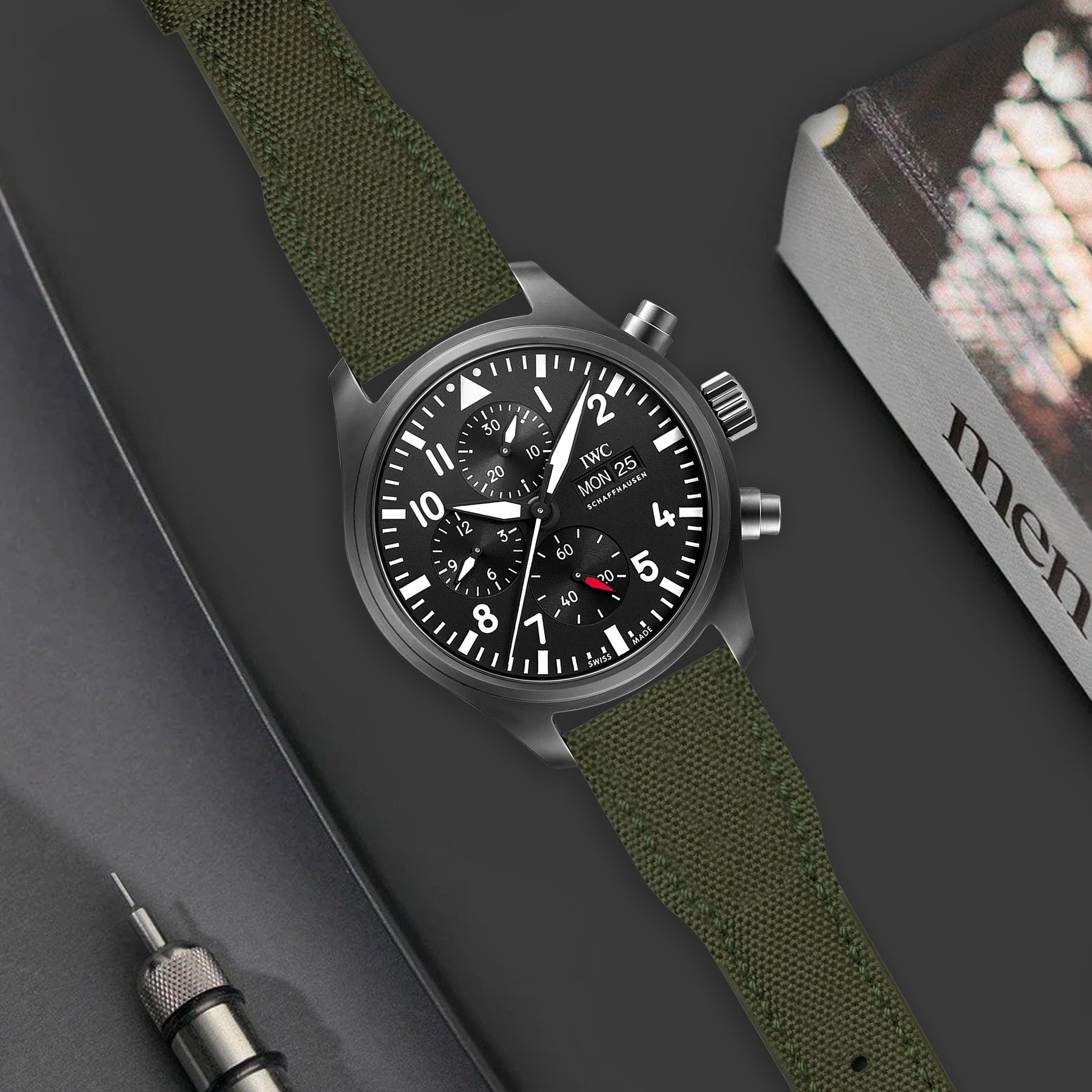 IWC Pilot Straps - Canvas Army Green Pilot