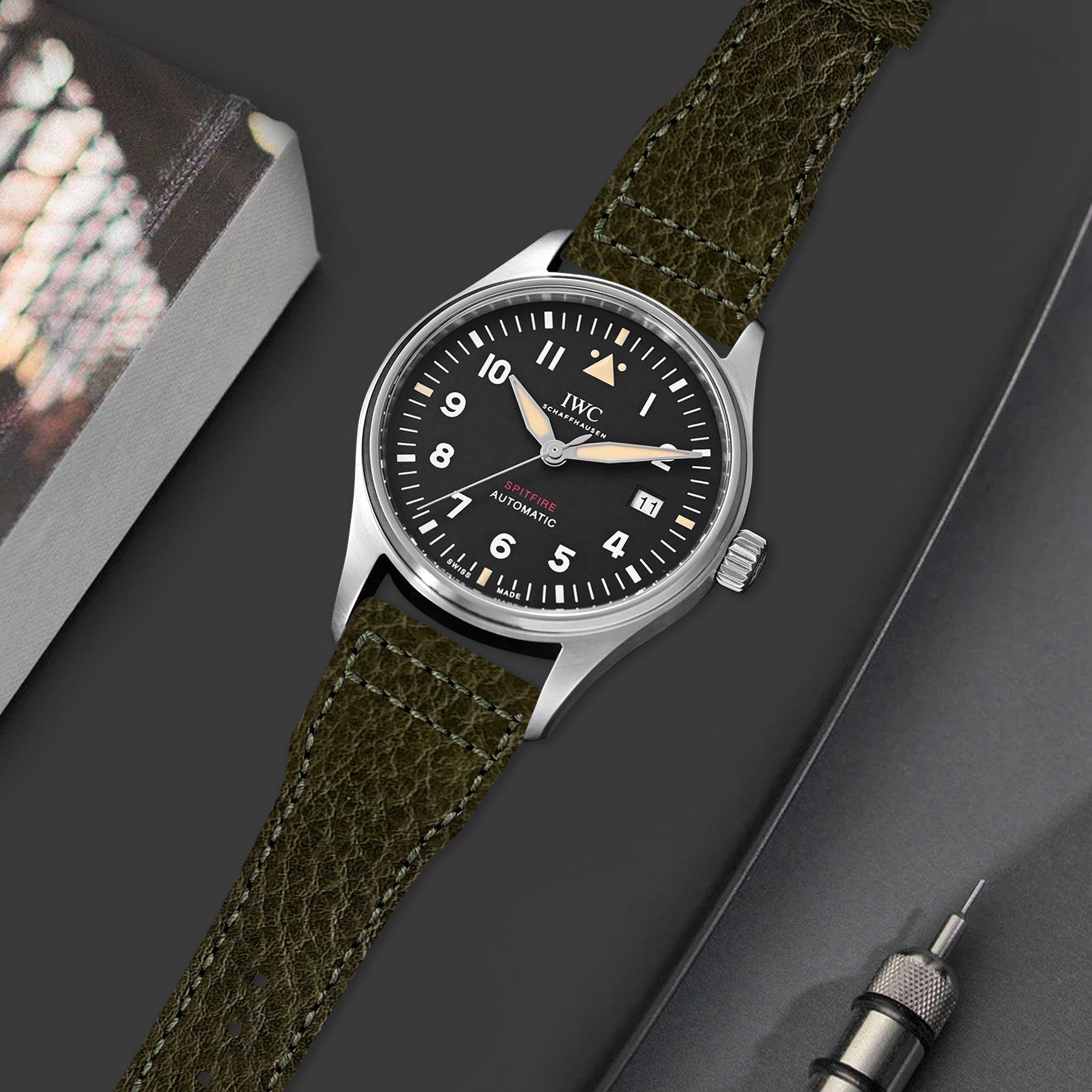 IWC Pilot Straps - Minerva Box Olive Pilot