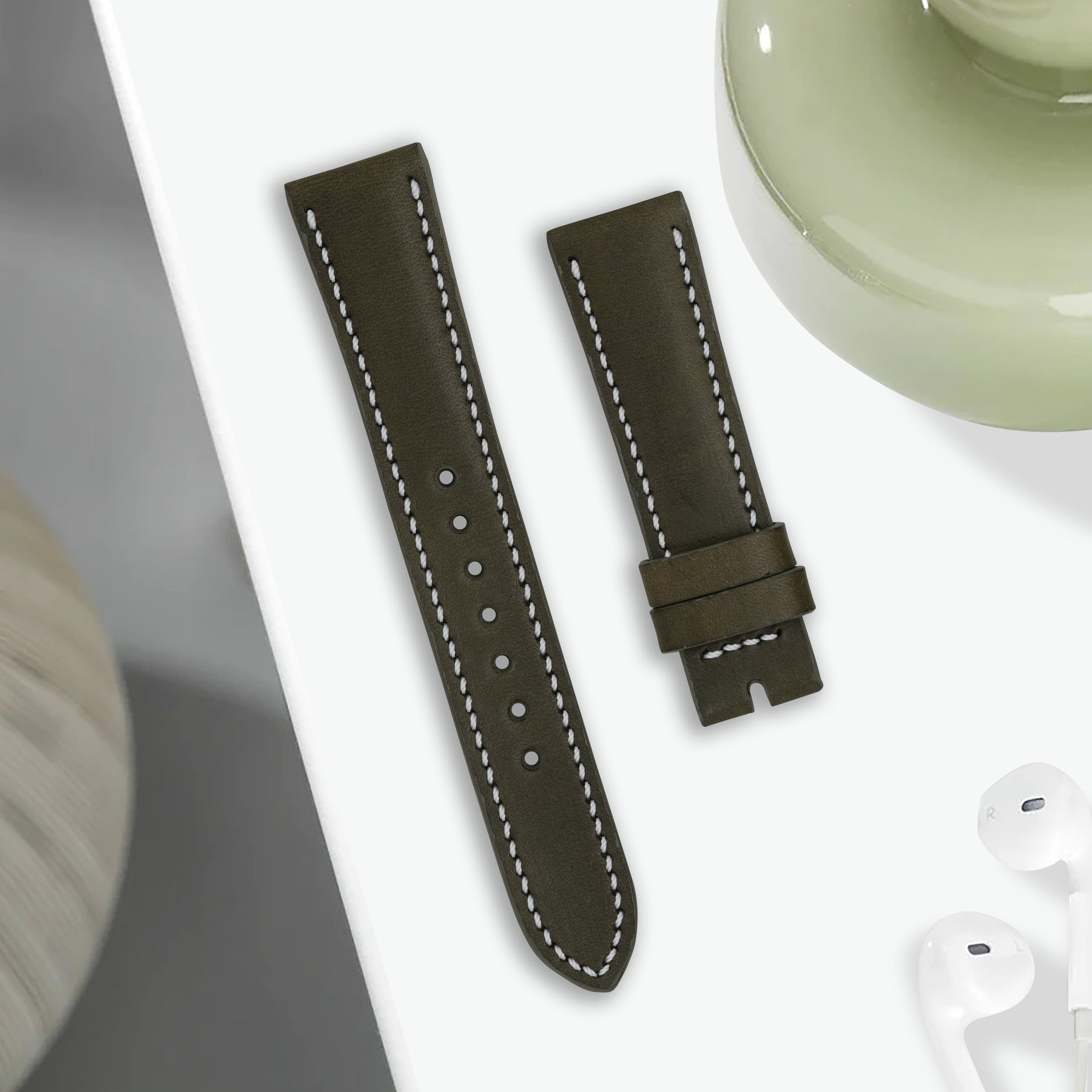 Material : Crafted from top-grade, full-grain vacchetta leather enriched with Italian fat wax and produced by the renowned Badalassi Carlo tannery in Italy, our Minerva Smooth straps offer a soft, velvety touch with refined firmness. Its satin-smooth surface and deep through-dyed color mature beautifully, developing an elegant patina that reflects true Italian luxury craftsmanship.