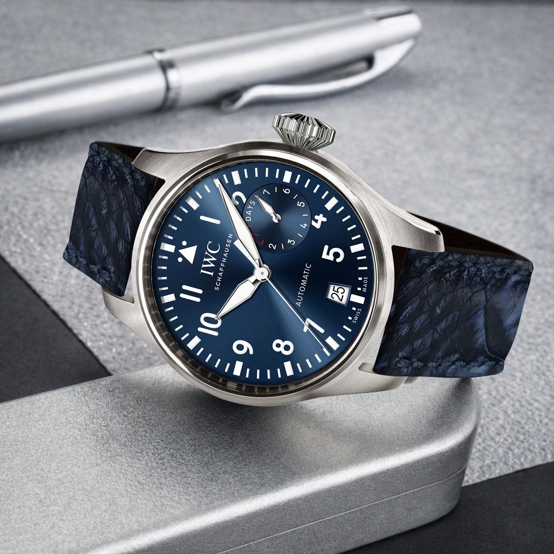 IWC Pilot Straps - Ostrich Leg Nubuck Navy Blue