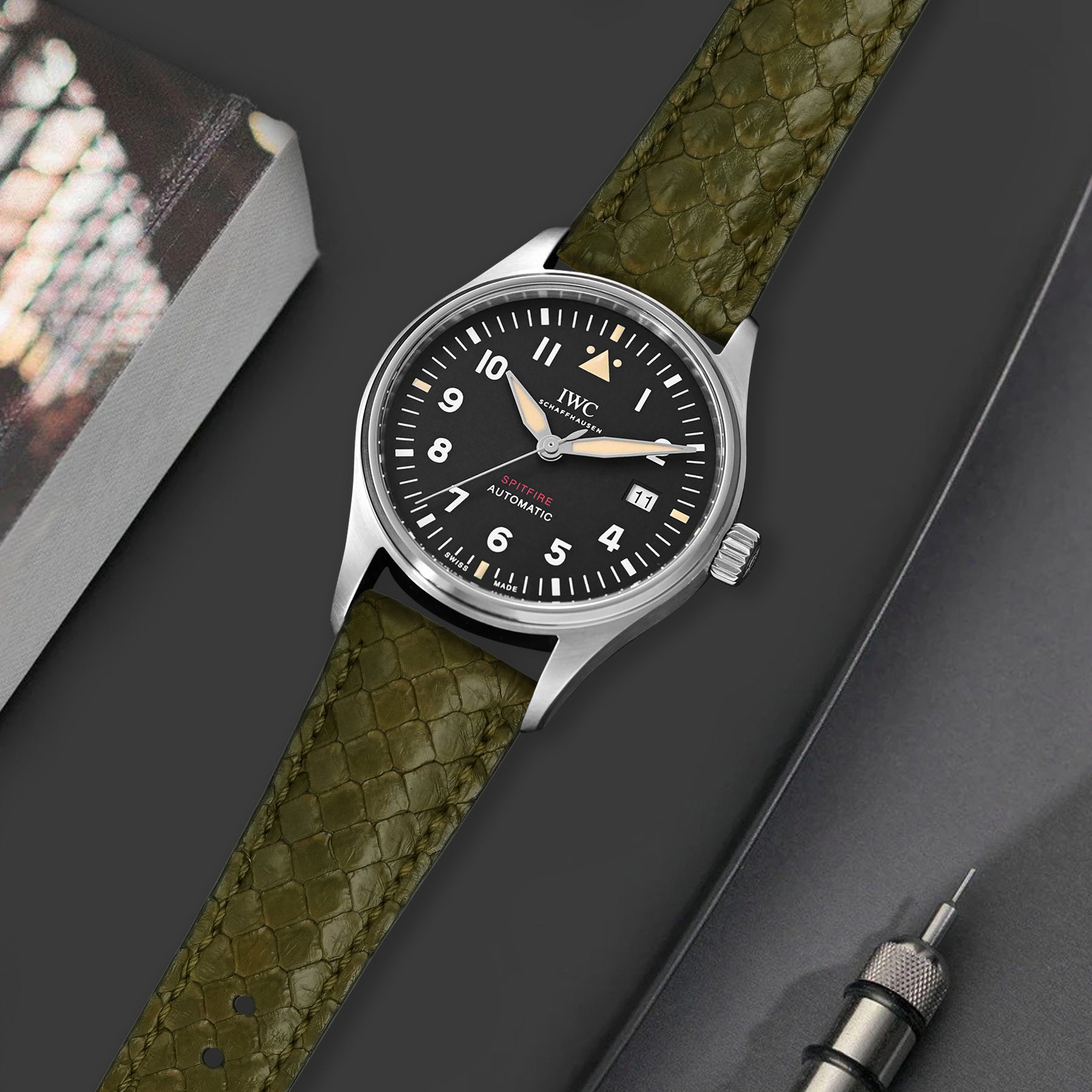 IWC Pilot Straps - Python Olive