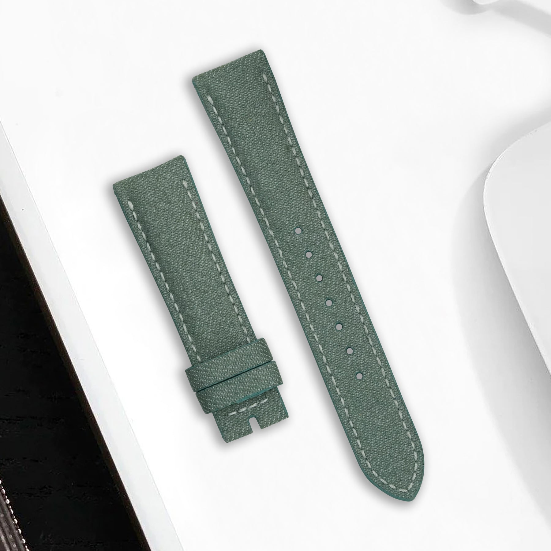 Description : Looking for something more eye-catching? Japanese Denim Sage brings contrast and clarity to your wrist. The muted-green denim tone combined with visible white stitch seams gives the strap a fresh, expressive look that stands out without being loud.