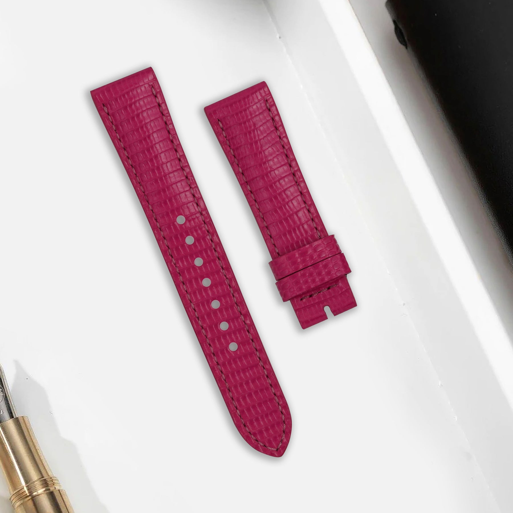 Description : Luxurious lizard leather with its typical small scales is manufactured from first-class lizard, tanned with a very special treatment and seamlessly joined to a layer of soft lining leather. That's why each piece of watch strap has unique pattern.