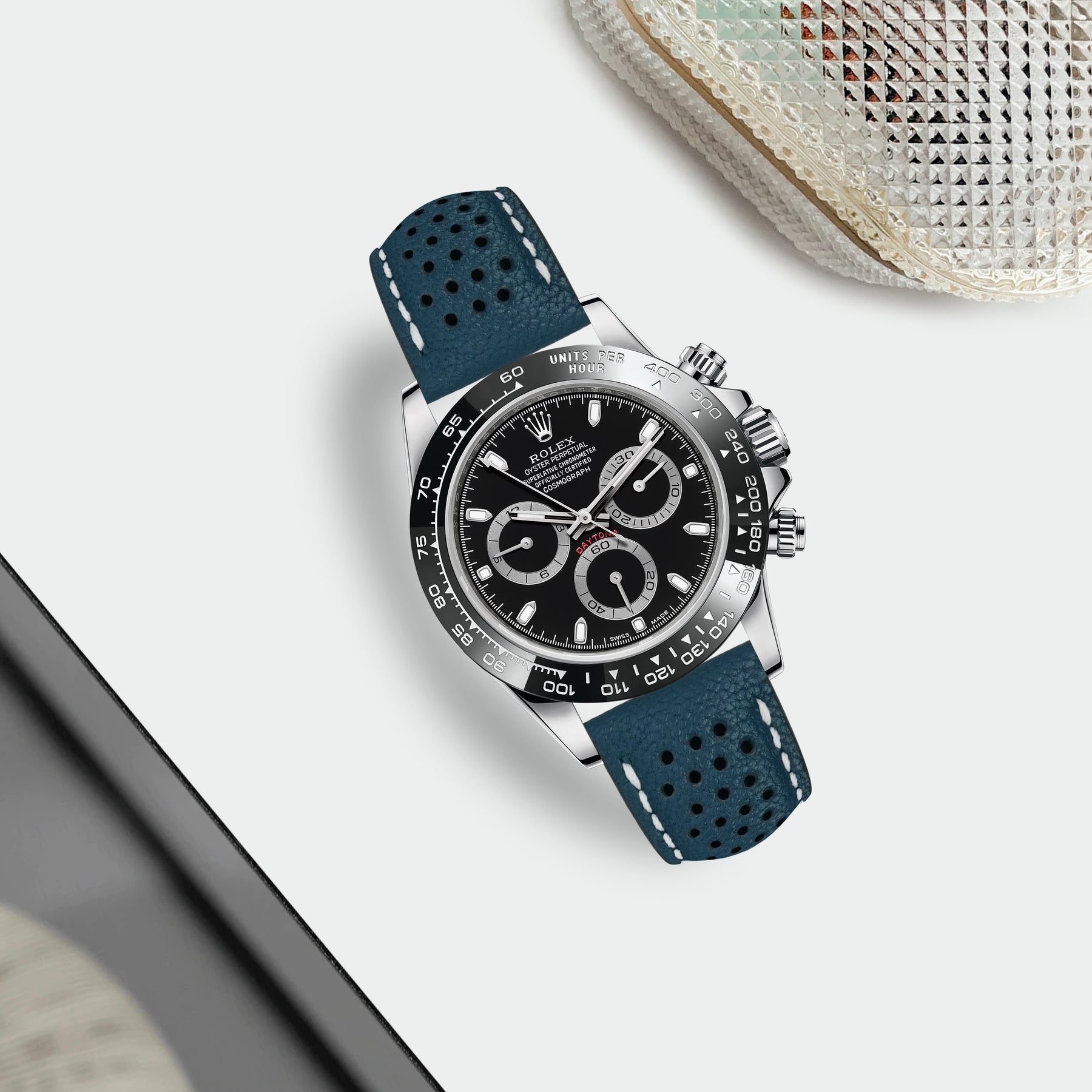 Description : Inspired by the sporty times of the 70’s, these racing straps are an essential to make any sport watch look even cooler. The holes make the strap lighter and more breathable, ideal for warm conditions where you want the comfy feel of a leather strap but don’t want the whole leather feel.