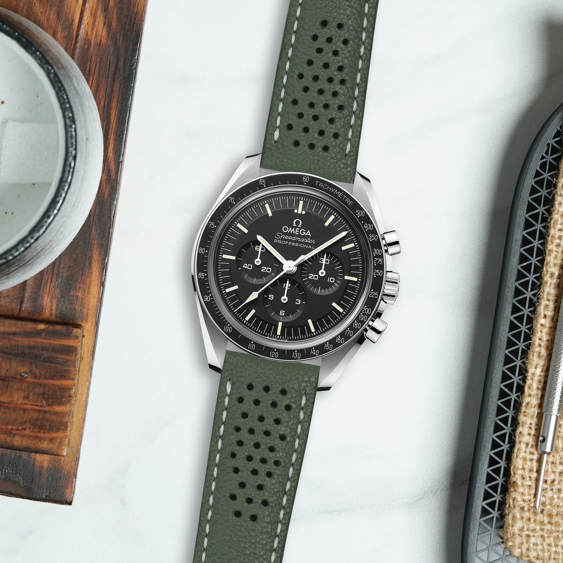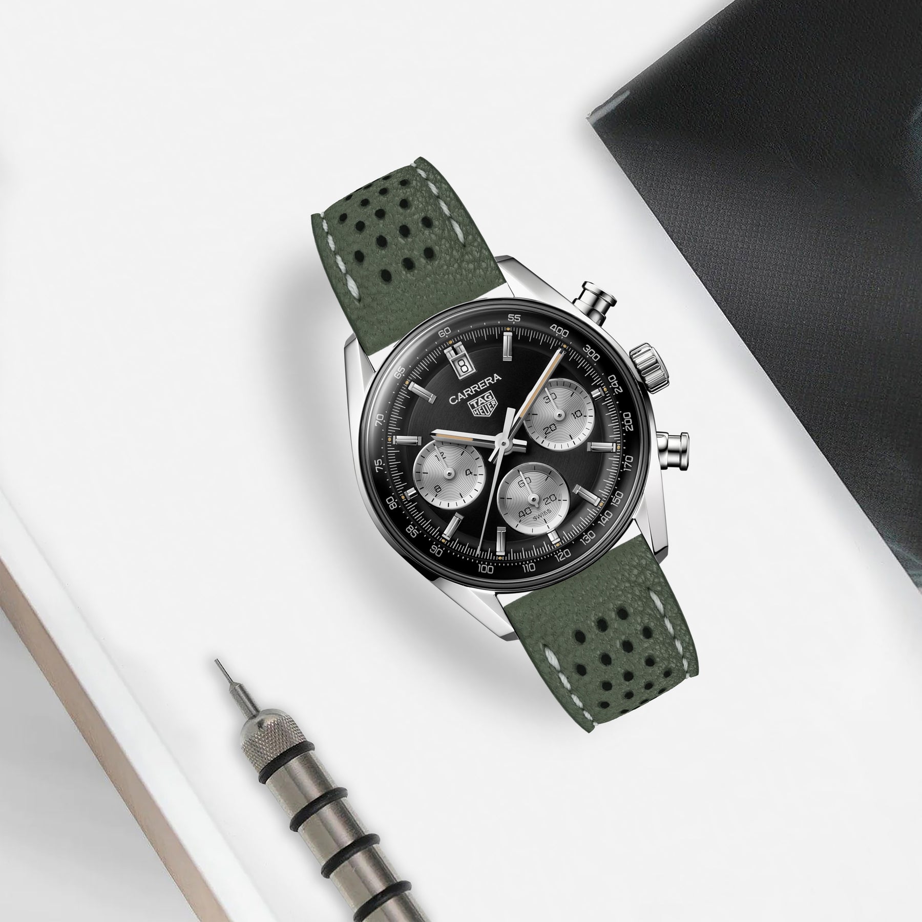 Description : Inspired by the sporty times of the 70’s, these racing straps are an essential to make any sport watch look even cooler. The holes make the strap lighter and more breathable, ideal for warm conditions where you want the comfy feel of a leather strap but don’t want the whole leather feel.