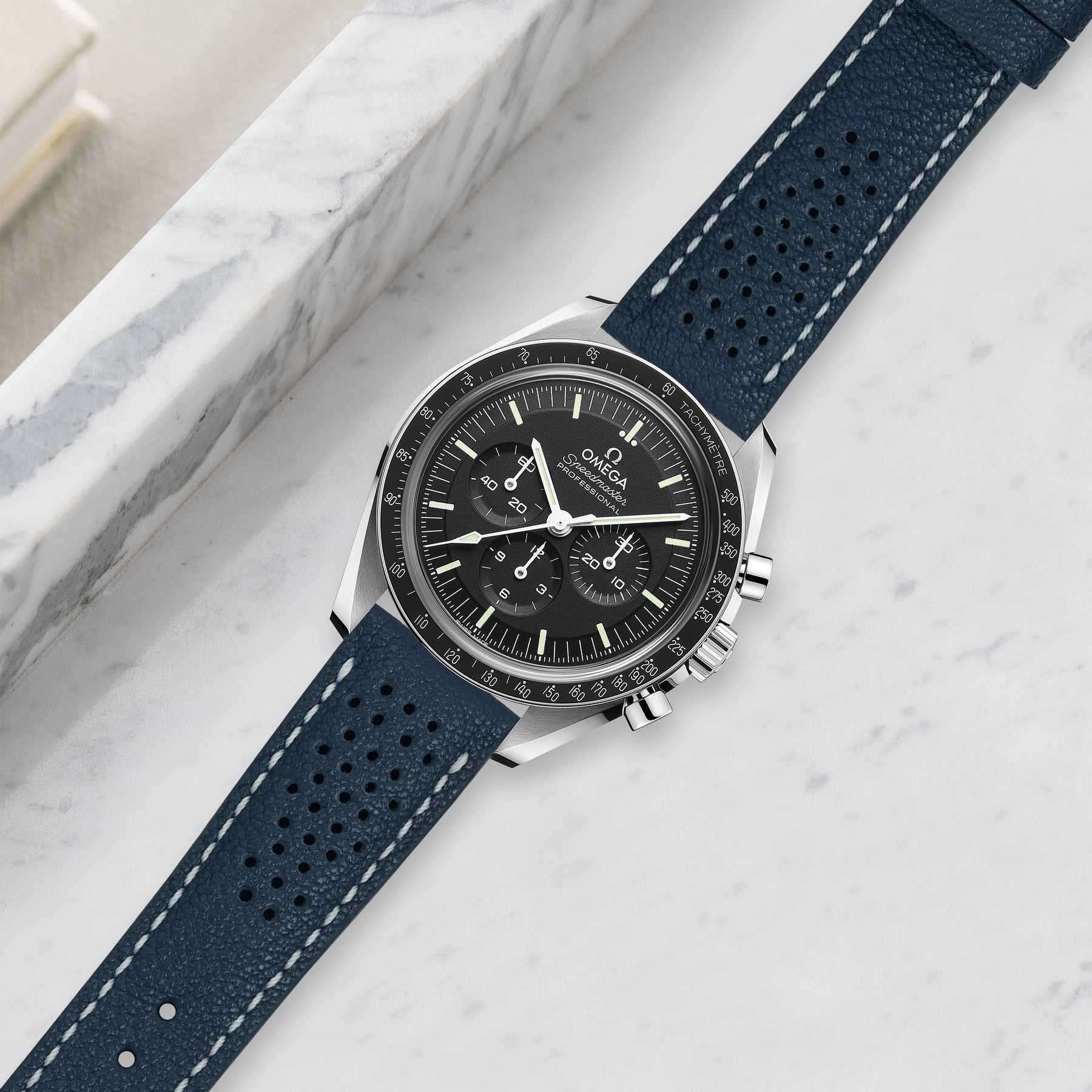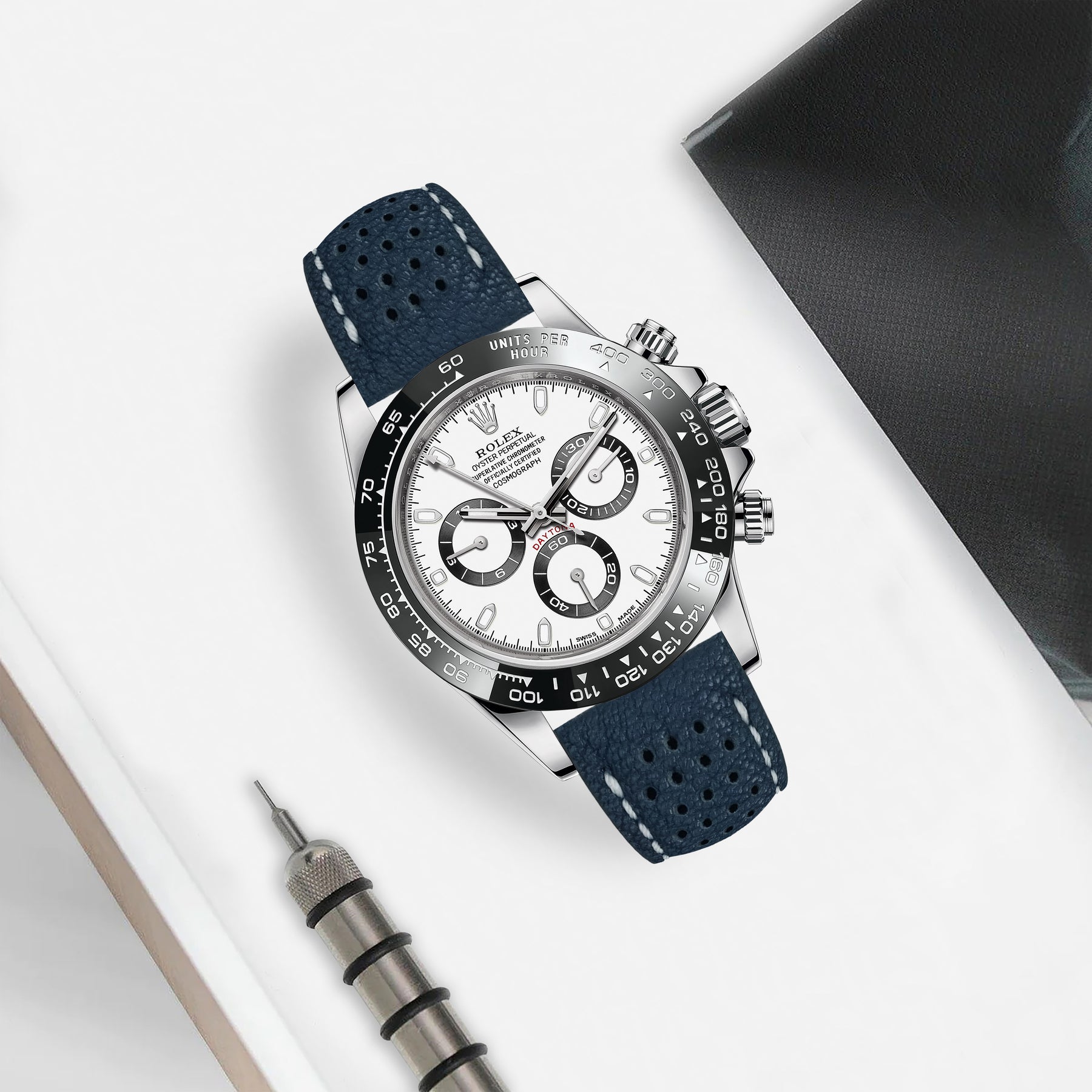 Description : Inspired by the sporty times of the 70’s, these racing straps are an essential to make any sport watch look even cooler. The holes make the strap lighter and more breathable, ideal for warm conditions where you want the comfy feel of a leather strap but don’t want the whole leather feel.
