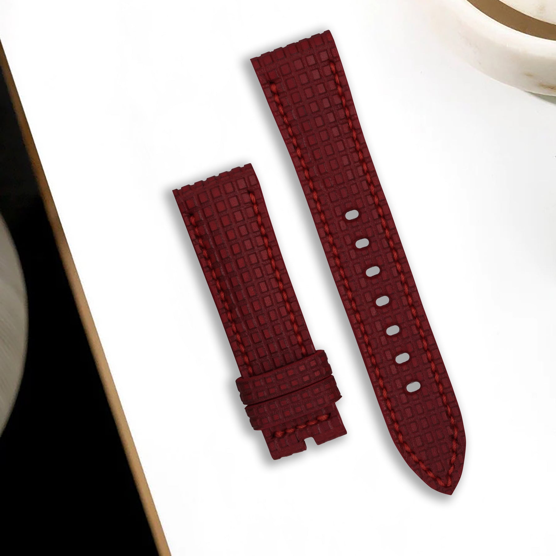 Material : Crafted from Italian vegetable tanned leather has been stamped in chessboard pattern with hypoallergenic calf leather lining which prolongs the life of our straps by creating a barrier between the leather of the strap and your skin.