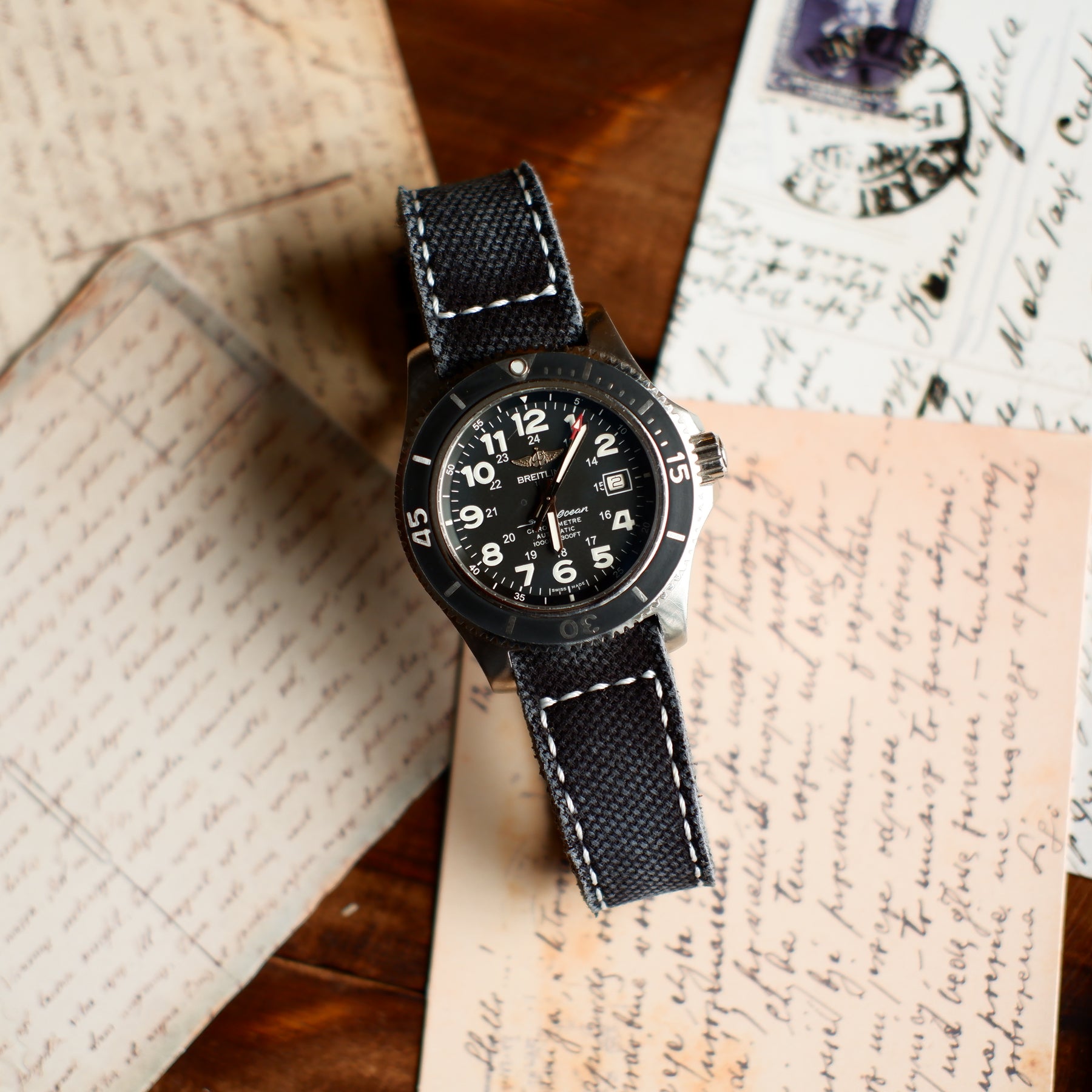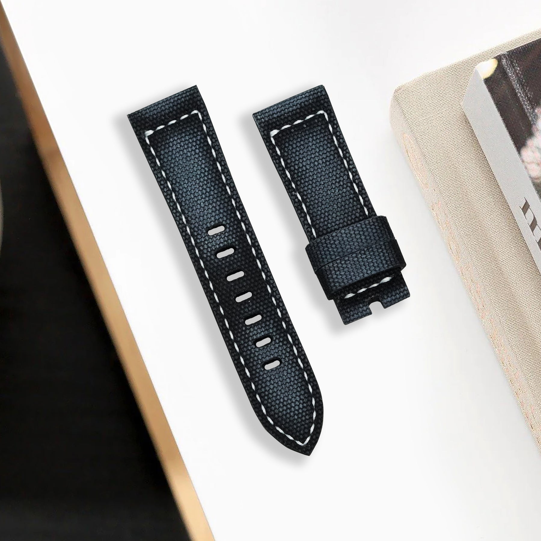 Crafted from high-quality canvas, these straps are not only stylish but also built to last. What truly sets these straps apart is the distinctive vintage washed-fray finish. This detail adds character and authenticity to your watch strap, as it mimics the wear and tear that naturally occurs over time, giving your timepiece a unique appearance.