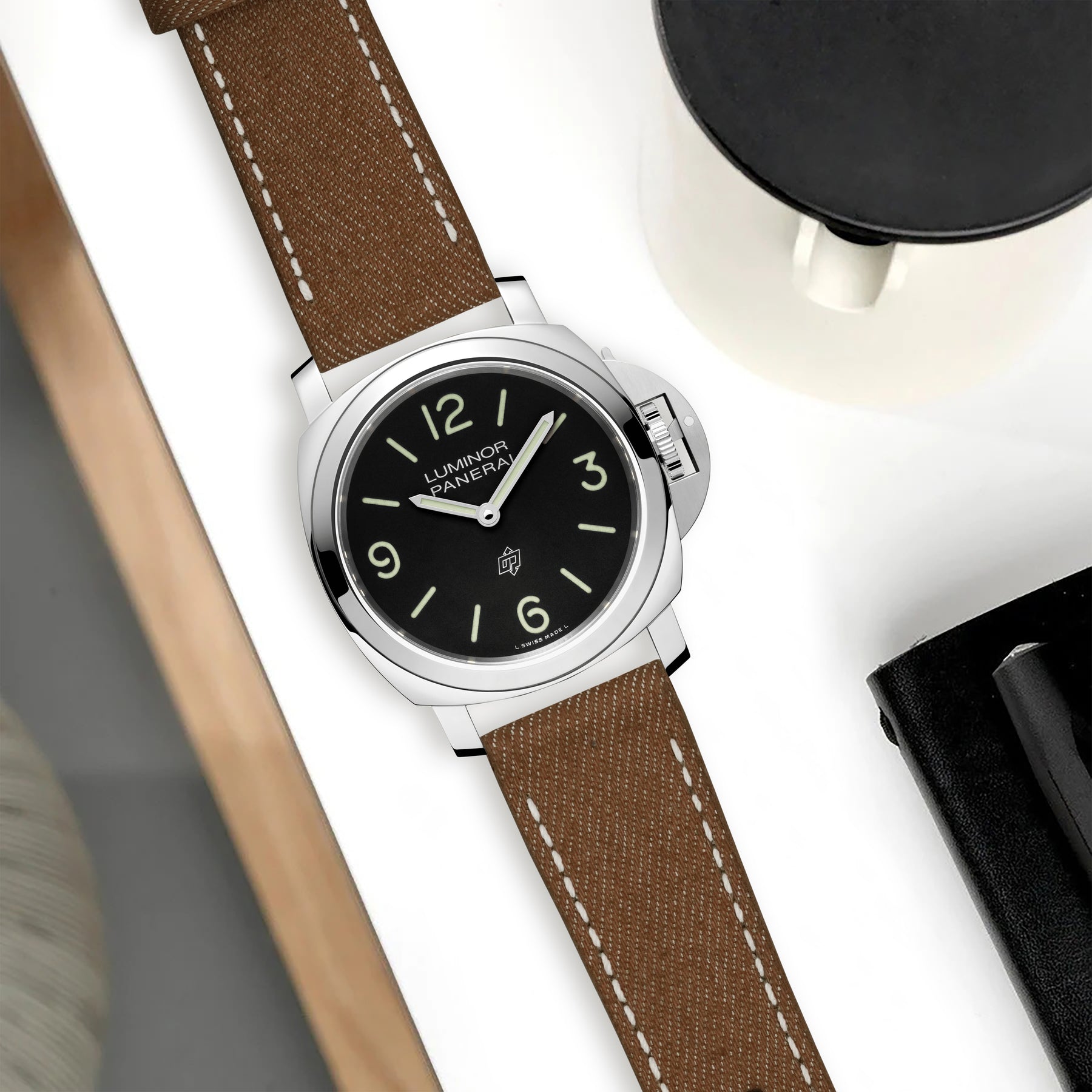 Description : Looking for something more eye-catching? Japanese Denim Oakwood brings contrast and clarity to your wrist. The earthy-brown denim tone combined with visible white stitch seams gives the strap a fresh, expressive look that stands out without being loud.