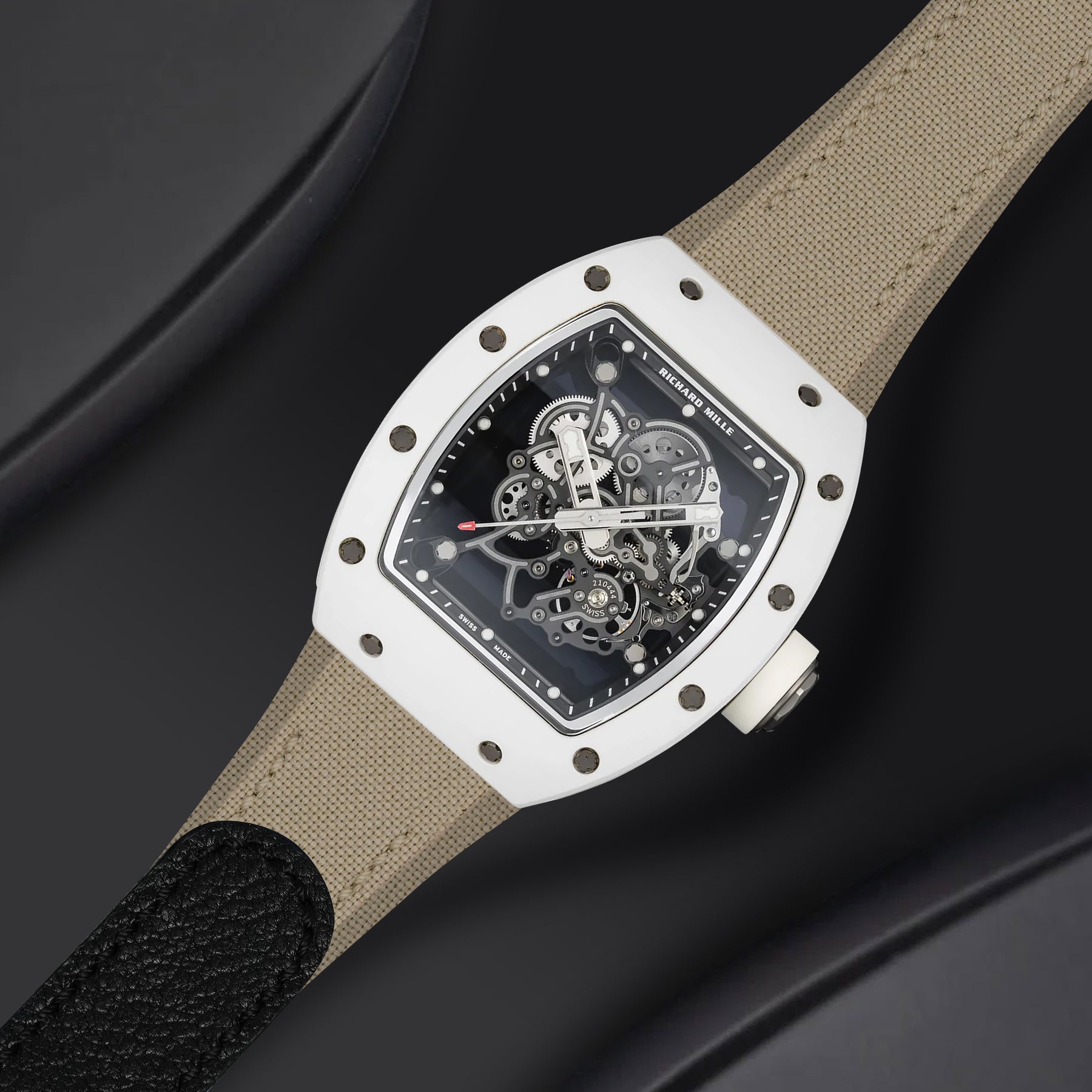 Description : It’s a combination of aesthetic appeal and perfect integration. Easy to put on and take off with a adjustable VELCRO brand fastener, made to precisely fit and compliment the quality and beauty of specific Richard Mille RM-11, RM-35, RM-55, RM-30, RM-10, RM-05, RM-67, and RM-59.