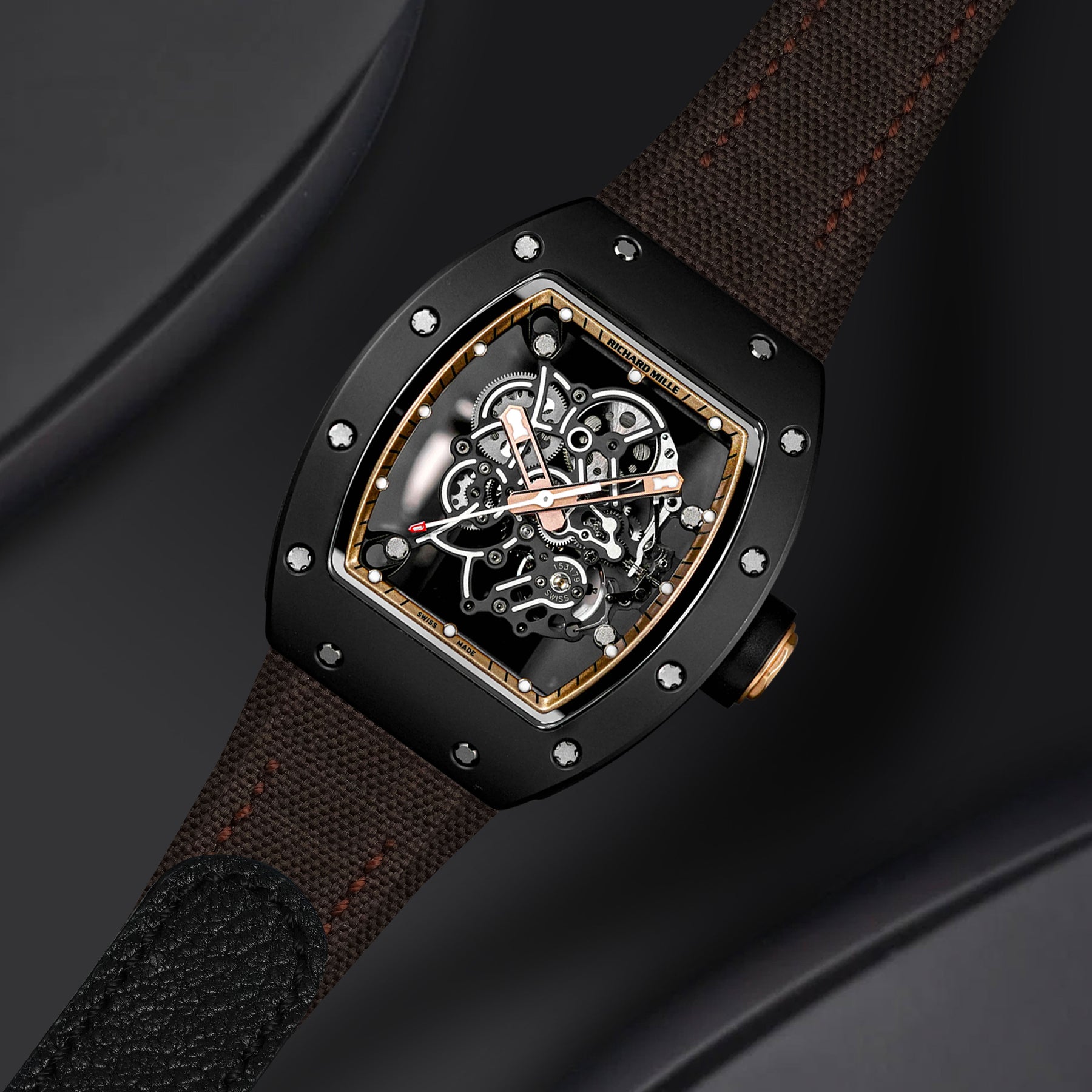 Description : It’s a combination of aesthetic appeal and perfect integration. Easy to put on and take off with a adjustable VELCRO brand fastener, made to precisely fit and compliment the quality and beauty of specific Richard Mille RM-11, RM-35, RM-55, RM-30, RM-10, RM-05, RM-67, and RM-59.