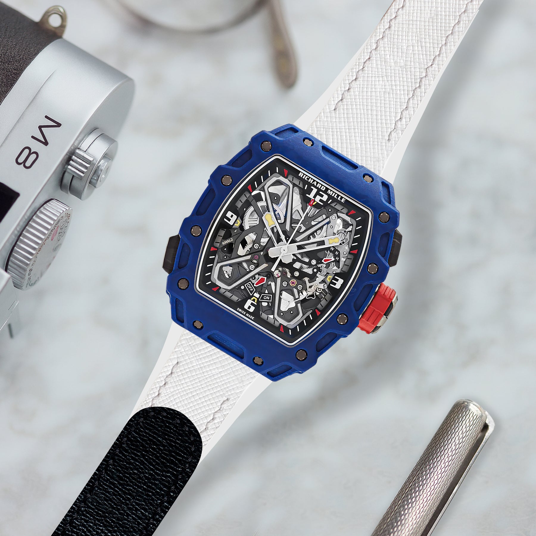 Description : It’s a combination of aesthetic appeal and perfect integration. Easy to put on and take off with a adjustable VELCRO brand fastener, made to precisely fit and compliment the quality and beauty of specific Richard Mille RM-11, RM-35, RM-55, RM-30, RM-10, RM-05, RM-67, and RM-59.