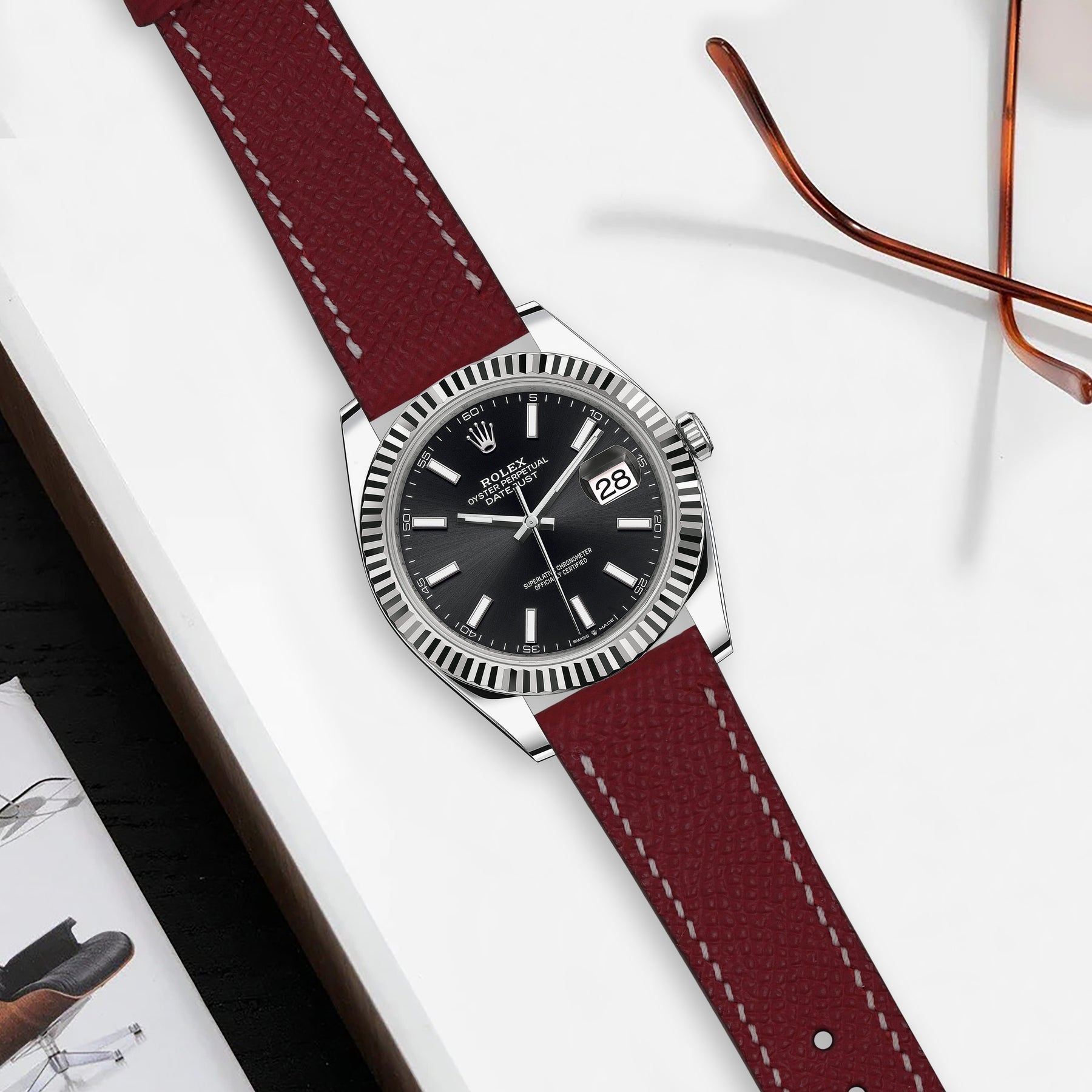 Rolex Datejust Straps - Epsom Maroon