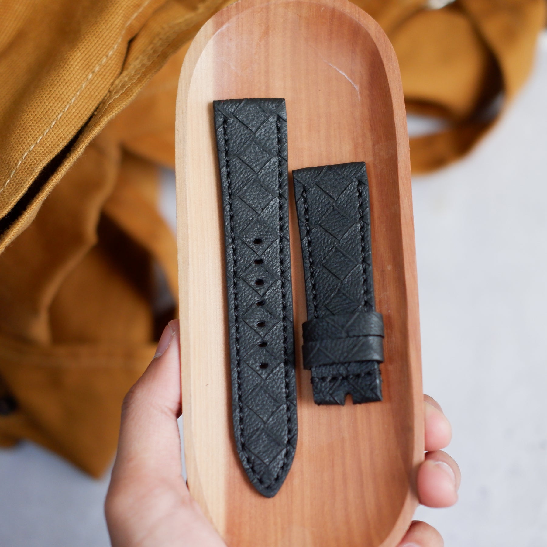 The strap has woven pattern from soft calf leather in our signature intrecciato weave. Intrecciato is the reason these straps look so good and last so long. Handcrafting expertly by our professional team with care and great attention to detail and repurpose them into your timepiece that are unique and never go out of style.