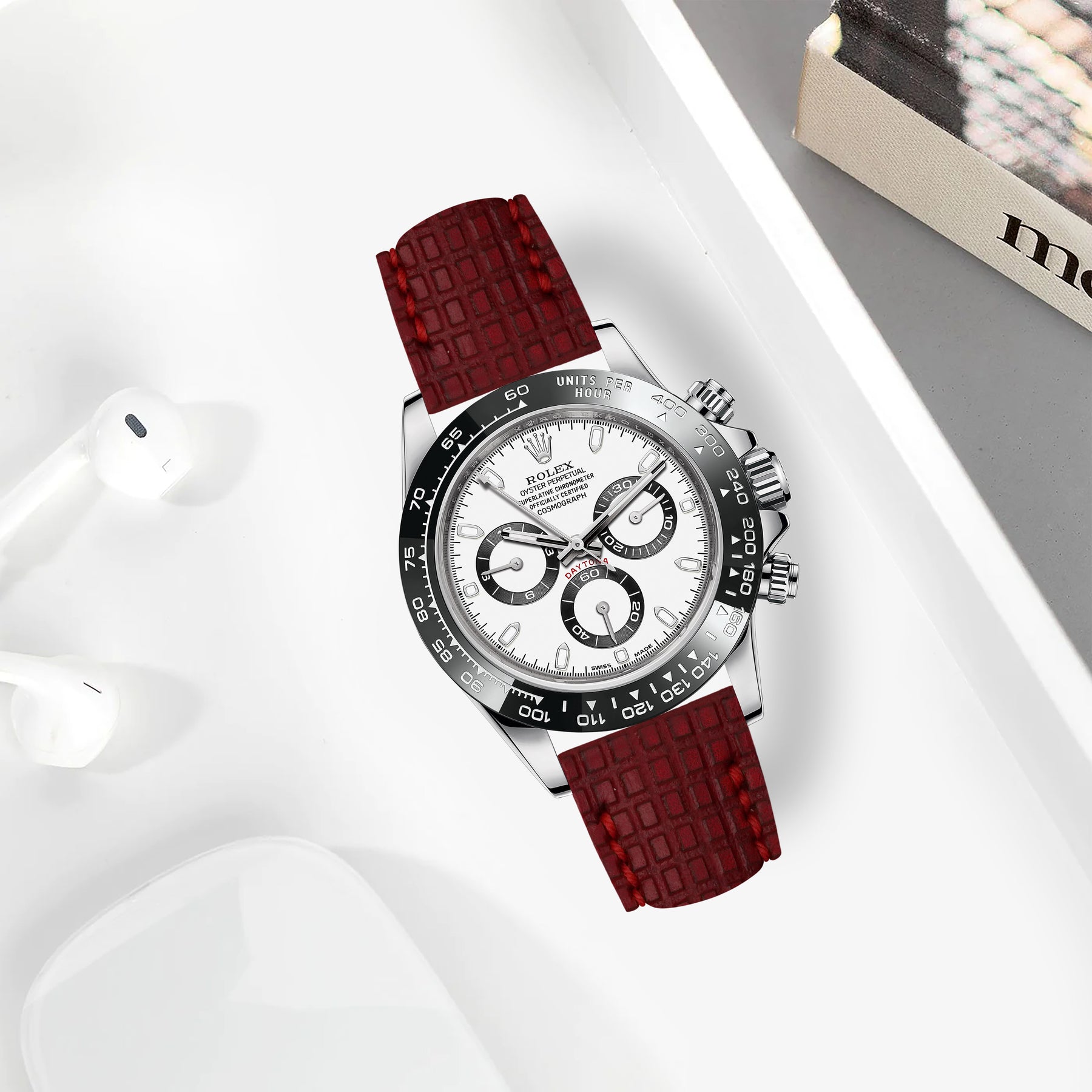 Material : Crafted from Italian pull up leather has been stamped in chessboard pattern with hypoallergenic calf leather lining which prolongs the life of our straps by creating a barrier between the leather of the strap and your skin.