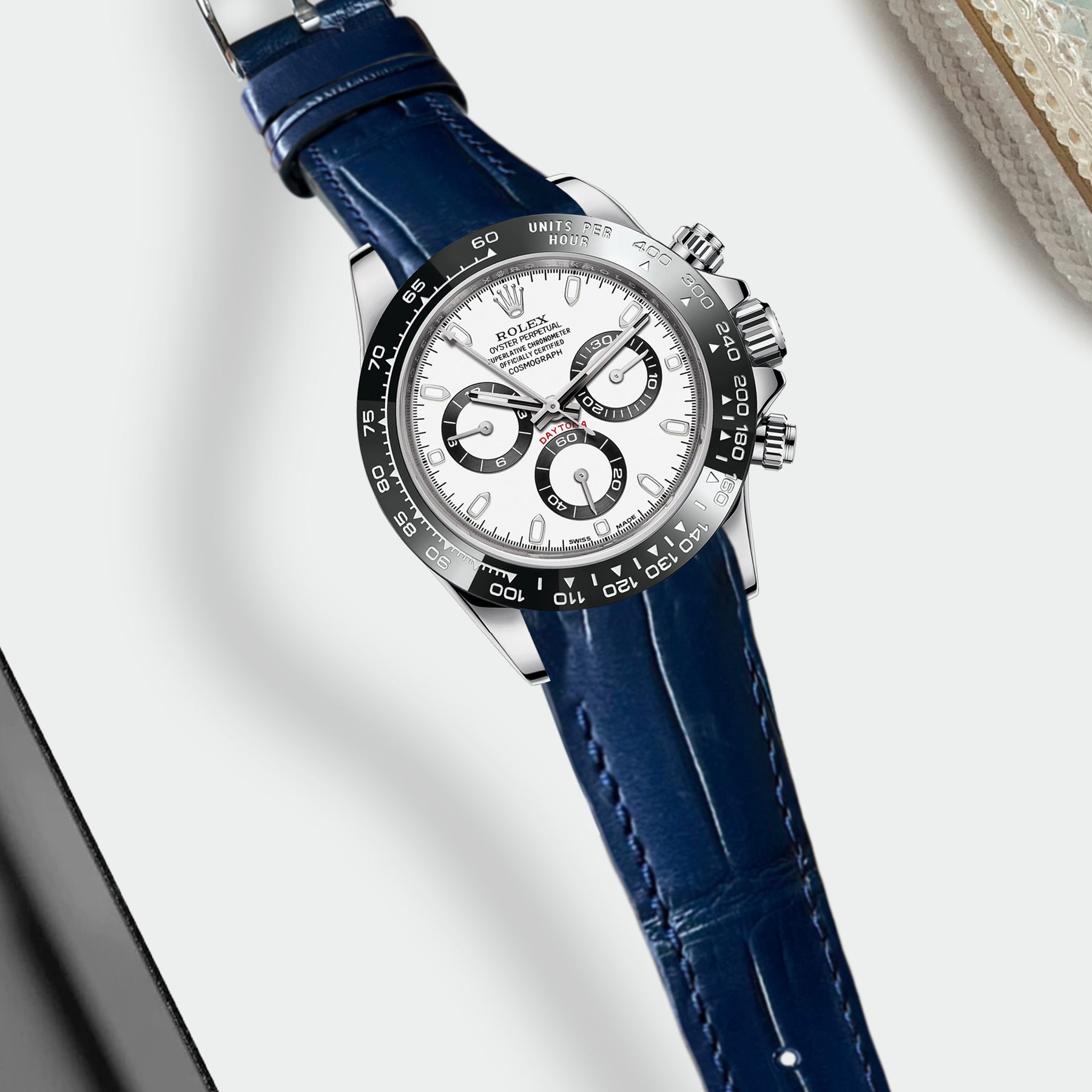 Made from the very best skin and worn for those very special occasions. This strap is a statement piece with a firm foot in elegant evening attire and another in jeans and weekend mode. Masculine strap that successfully pairs with a whole host of watches.