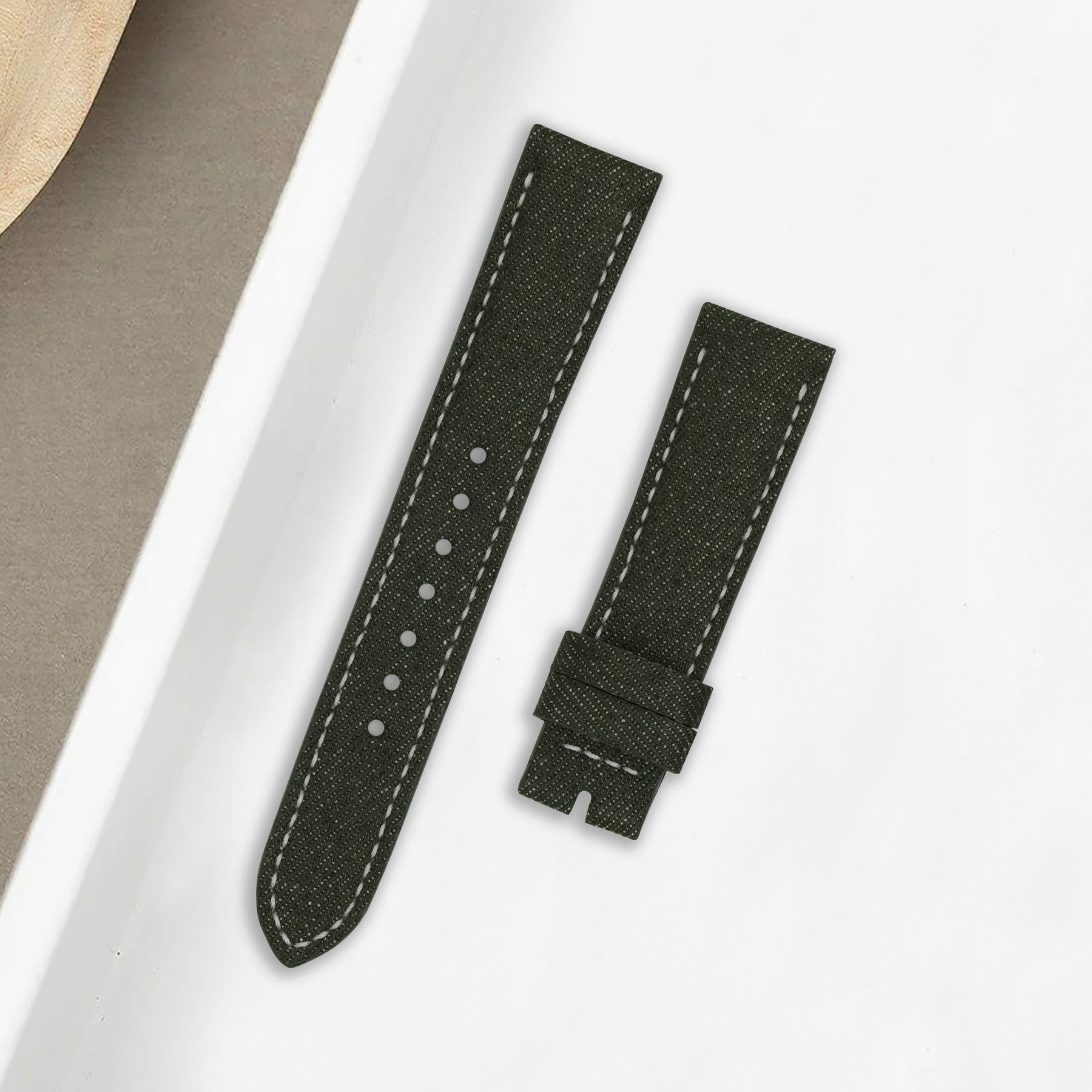 Description : Looking for something more eye-catching? Japanese Denim Oak Green brings contrast and clarity to your wrist. The earthy-green denim tone combined with visible white stitch seams gives the strap a fresh, expressive look that stands out without being loud.