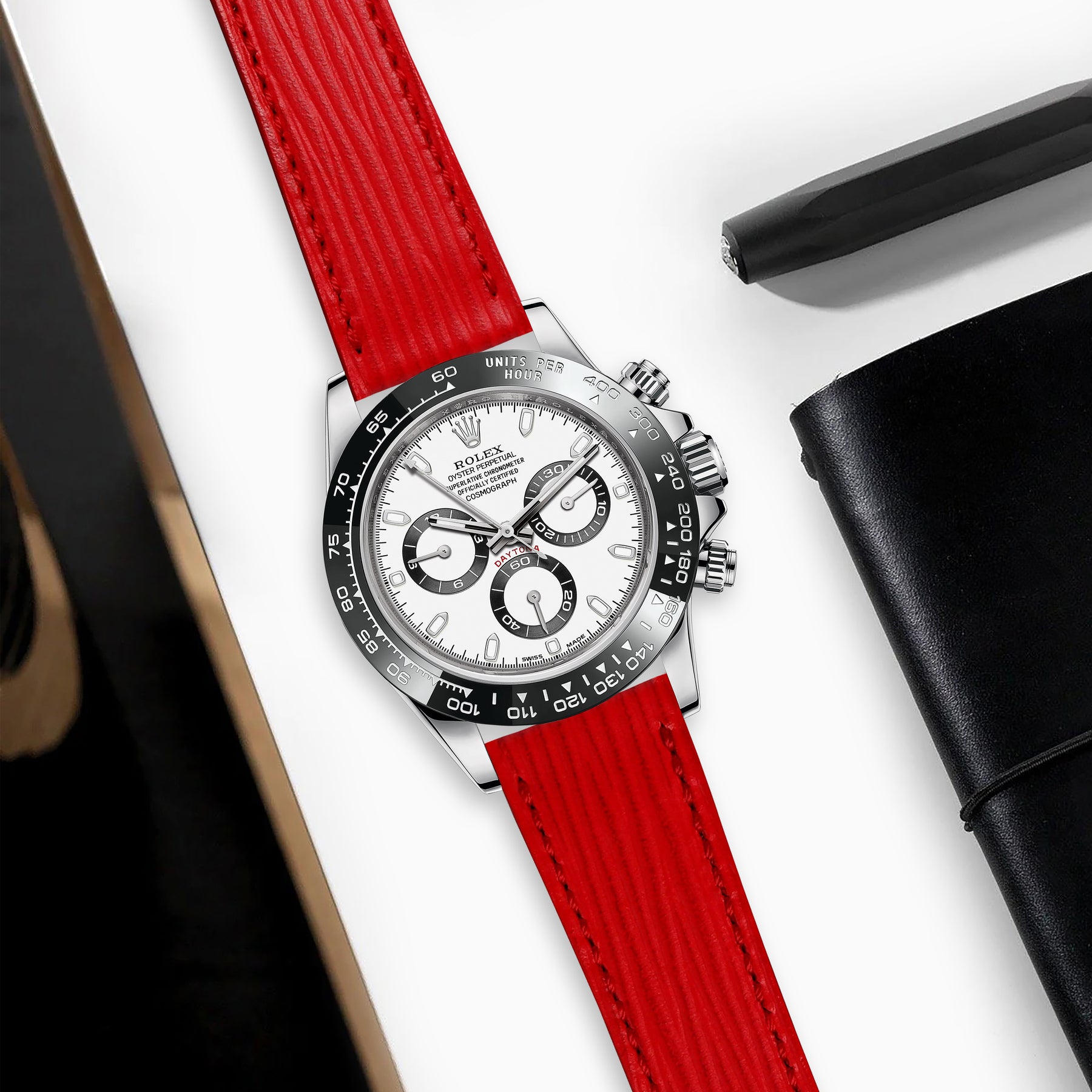 Sourced from the most prestigious Europe tanneries, boasts a distinctive texture that sets it apart. Available in a palette of sophisticated hues, our Epi serie cater to diverse tastes and preferences. From classic deep hues exudes understated luxury to rich vibrant tones that make a bold statement, there's a strap to complement every style and occasion. Whether paired with a classic dress watch or a vintage timepiece, these Epi serie effortlessly elevate your wrist game.