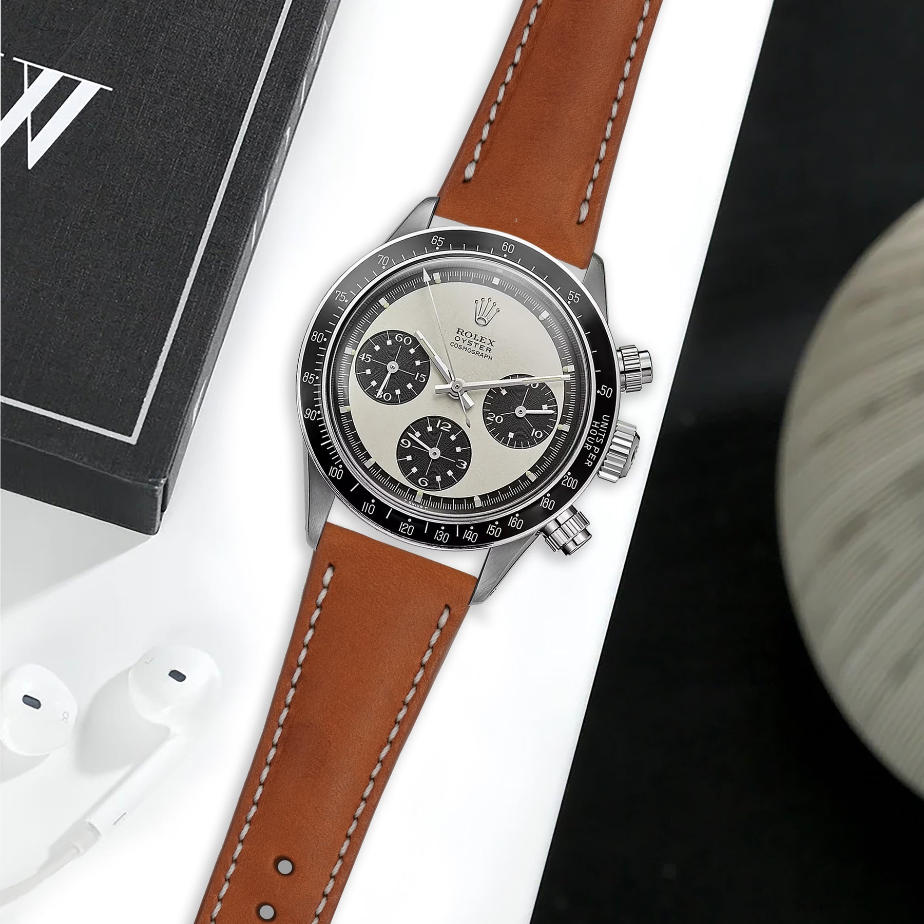 This leather is well-known for its soft feel and ability to develop a rich patina, adding character and depth the more you wear it. The smooth texture gives your watch an elegant look without being overly formal, making it suitable for both professional and casual settings.