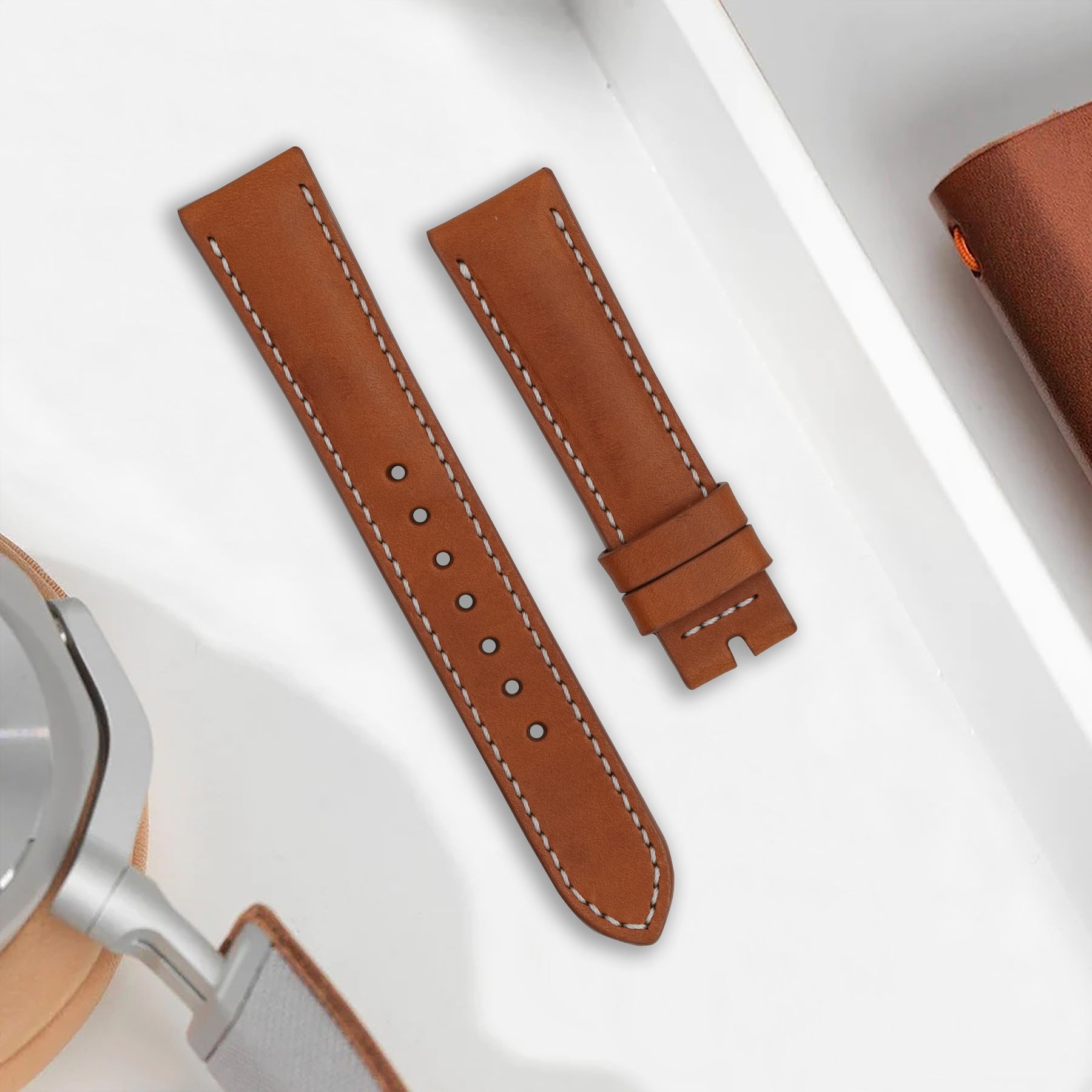 Material : Crafted from top-grade, full-grain vacchetta leather enriched with Italian fat wax and produced by the renowned Badalassi Carlo tannery in Italy, our Minerva Smooth straps offer a soft, velvety touch with refined firmness. Its satin-smooth surface and deep through-dyed color mature beautifully, developing an elegant patina that reflects true Italian luxury craftsmanship.
