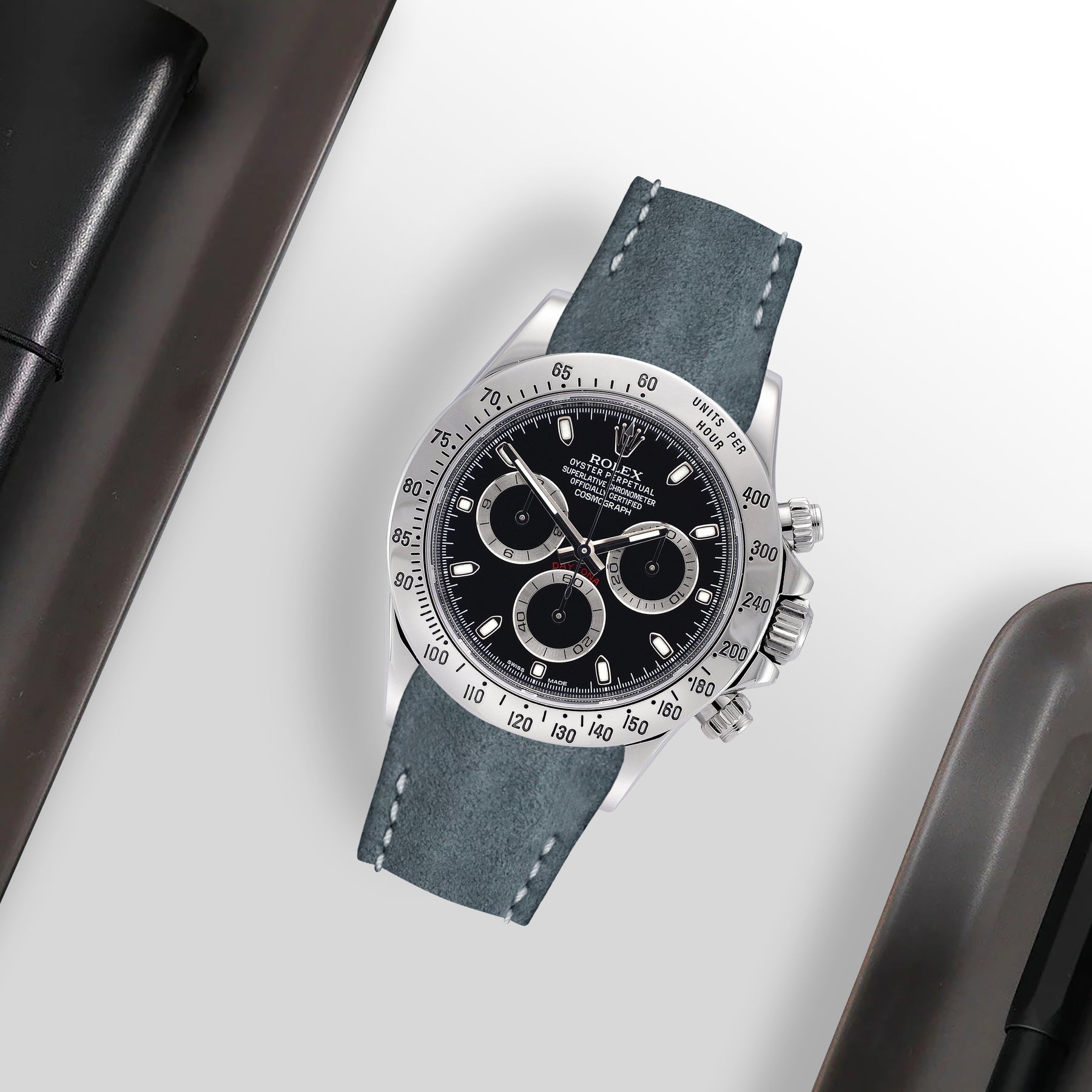 Suede has been the main stay of many a strap aficionados collection and has proved ever popular. Our fine Italian Suede are an elegant and versatile accessory that add a touch of sophiscation to any timepiece. Crafted from Calf butt splits, that has been processed with Scotchgard finished which gives it a hydrophobic surface and excellent resistance against water and stain.