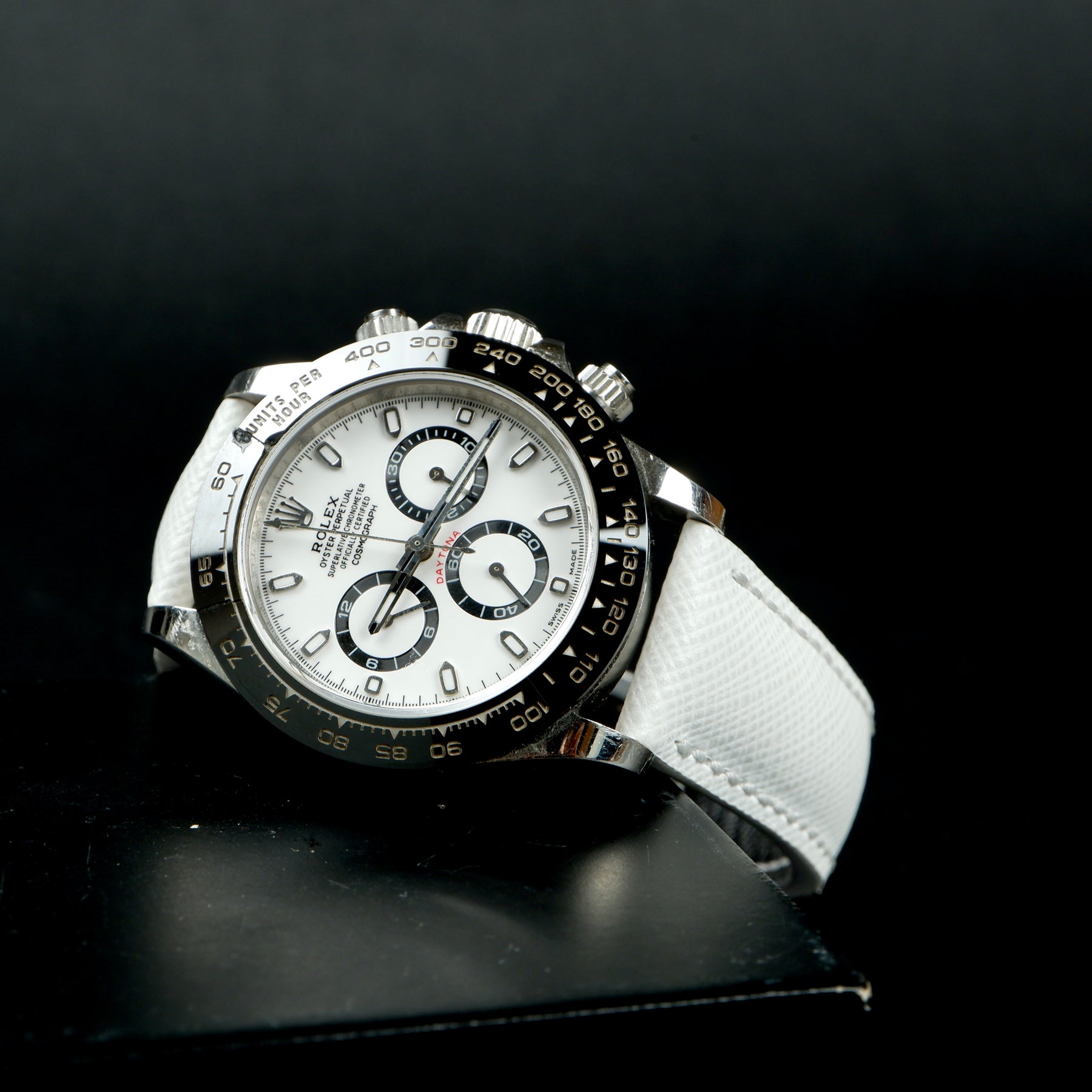 Our White Saffiano is the one strap for all your needs. The watch strap deals well with water, scratches and is also easy to care for and can be cleaned with a simple wipe using a damp cloth.