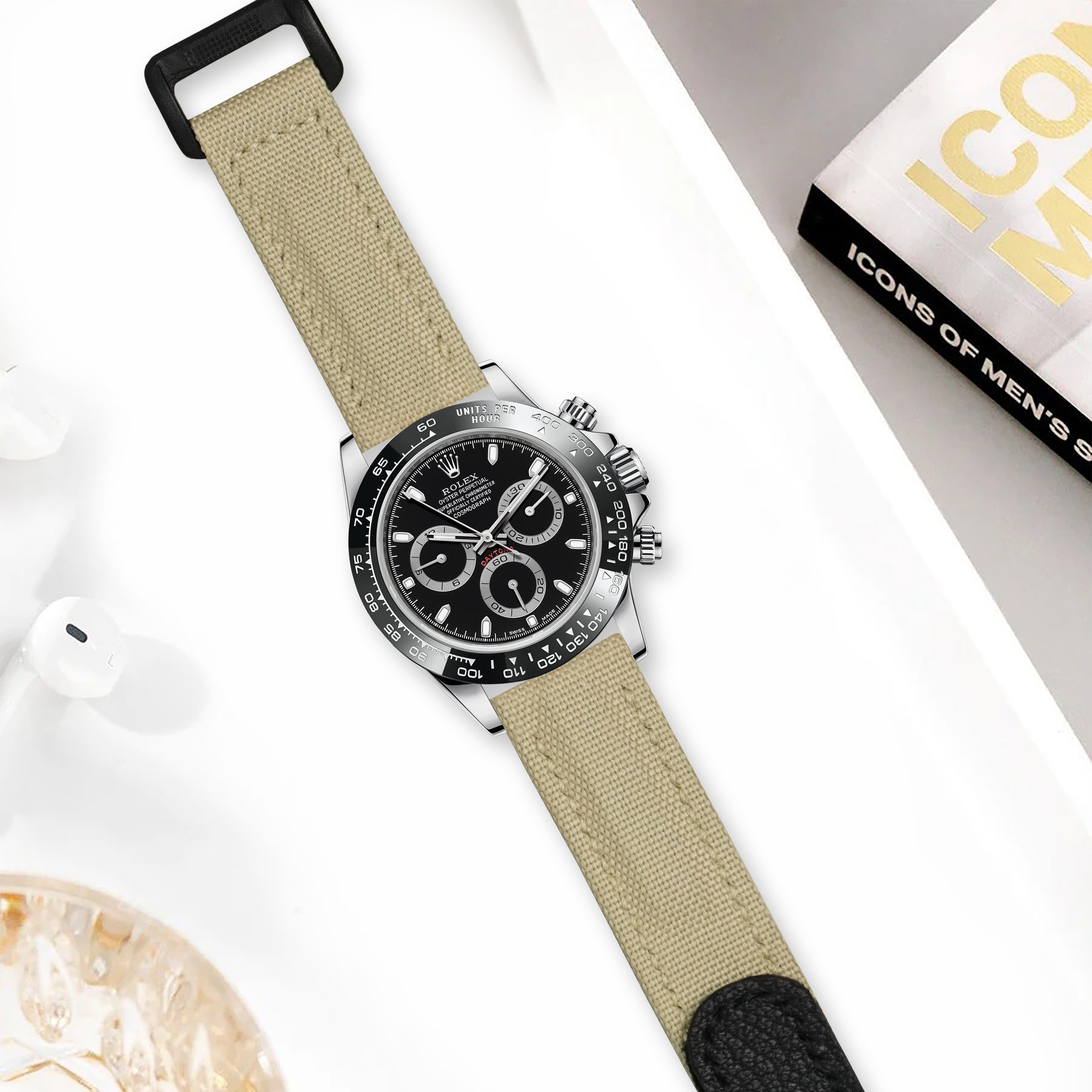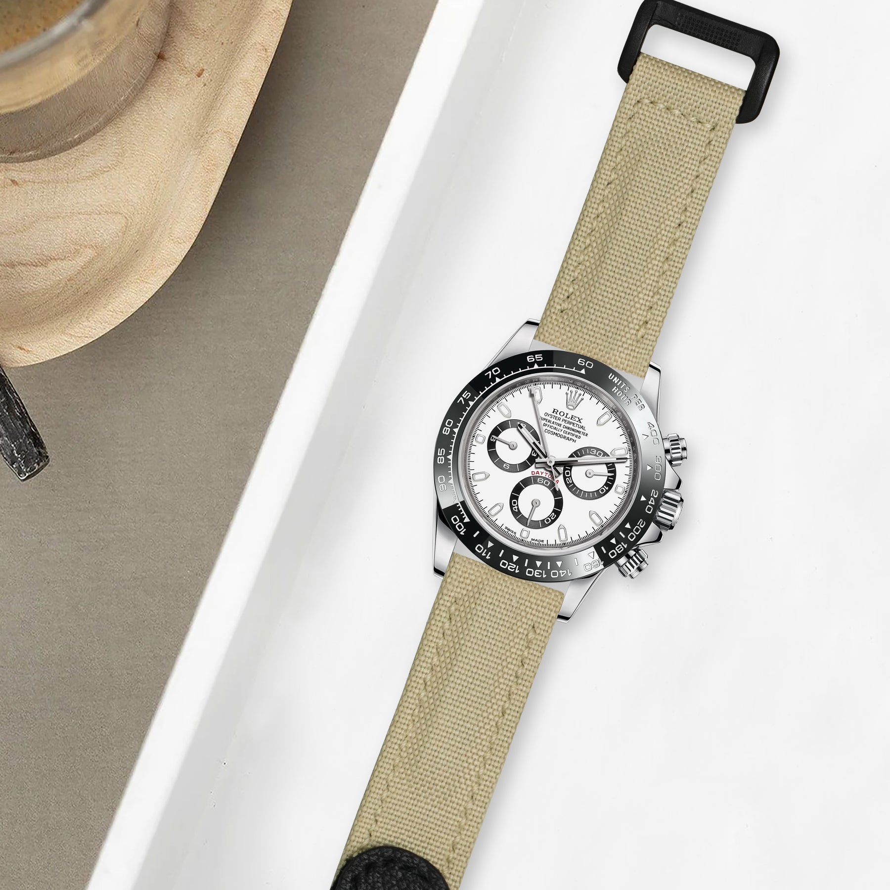 Rolex Daytona Straps - Velcro Canvas Extreme Padded Beige