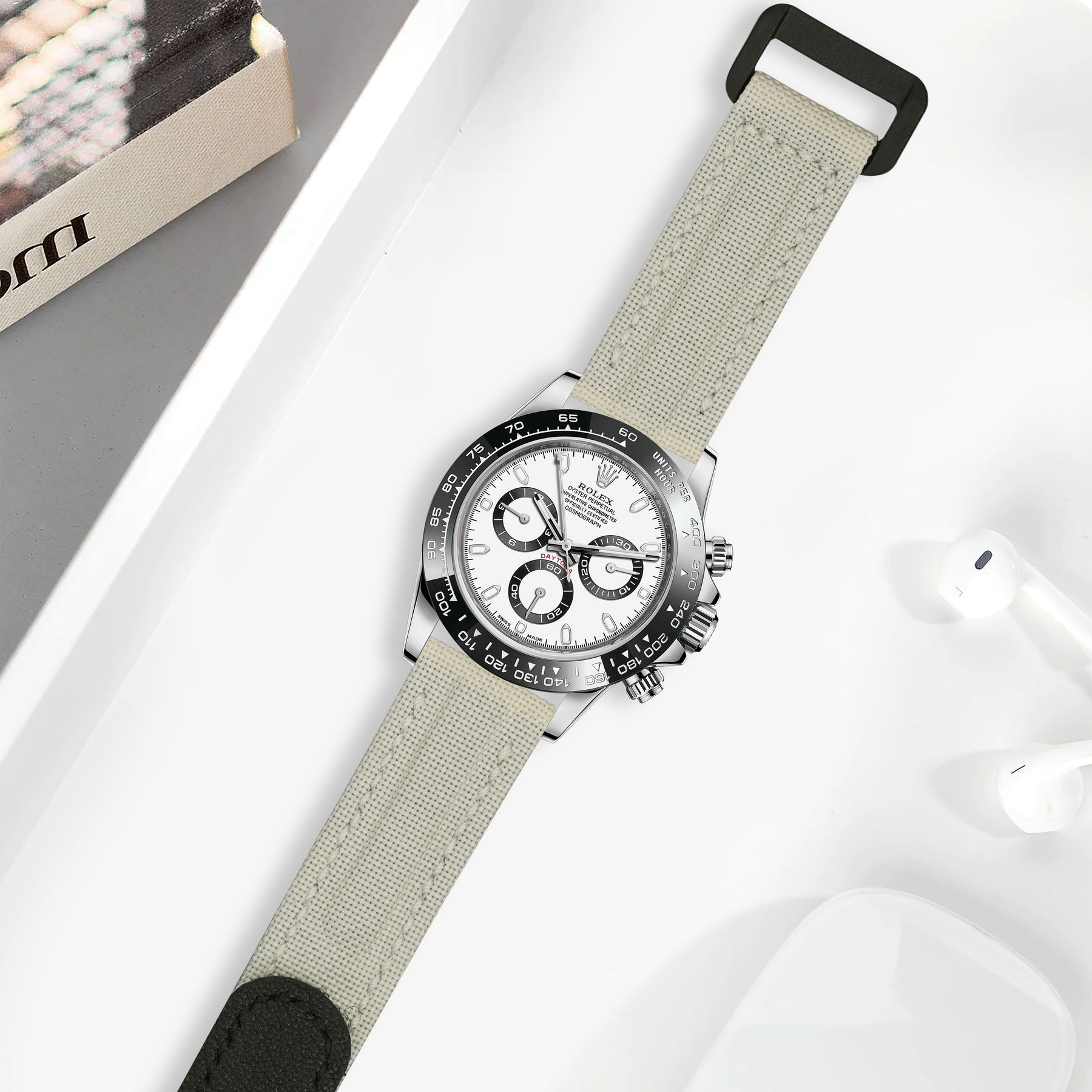 Rolex Daytona Straps - Velcro Canvas Extreme Padded Broken White